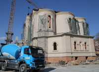 - Обсуждались рабочие моменты. Выбрали завод, где будем заказывать стальные подкровельные балки. Выбрали гранитную плитку для пола собора.Самое важное, что сейчас происходит на строительной площадке – заливка второго пояса центрального барабана. Он опирается на уже возведённые колонны.