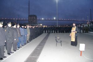 После молитвы священник обратился с поздравительным словом к личному составу и благословил офицеров и матросов на несение воинской службы. В дни Великого поста пожелал набраться терпения и «во всем стараться помогать ближнему в суровых походных условиях».