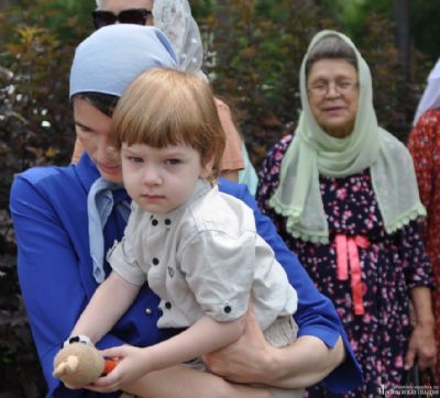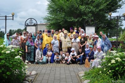 Затем все приложились к иконе святых князей, также владыка окропил присутствующих святой водой.