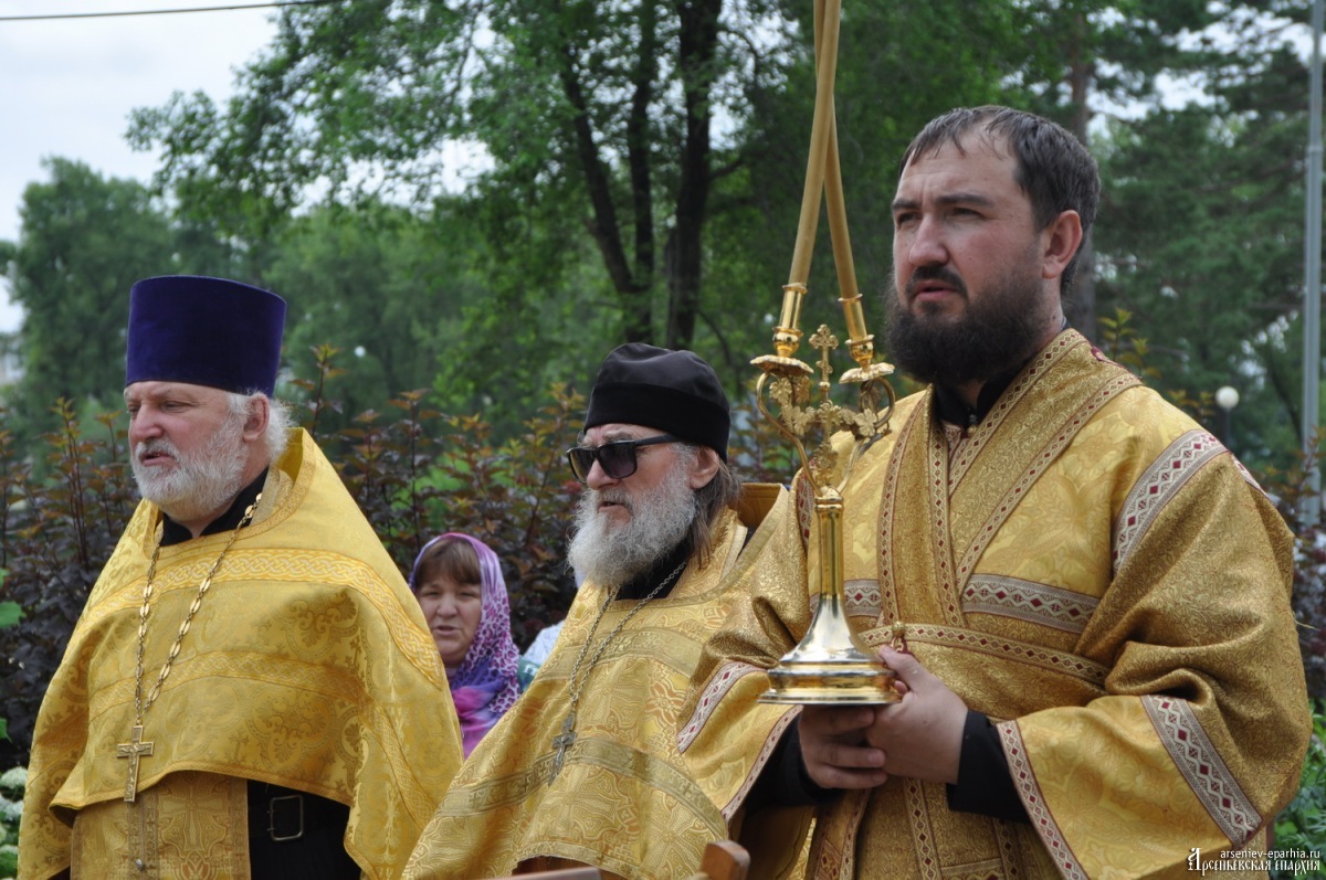 Молебен возглавил епископ Арсеньевский и Дальнегорский Гурий в сослужении протоиерея Николая Хоменко, иерея Константина Мироненко, иеромонаха Власия (Афанасьева), иерея Александра Ступа, диакона Кирилла Зиновьева, диакона Анатолия Яндюк и иеродиакона Досифея (Зыкова).