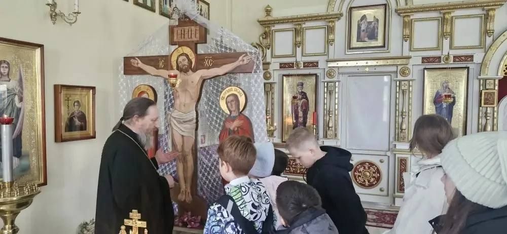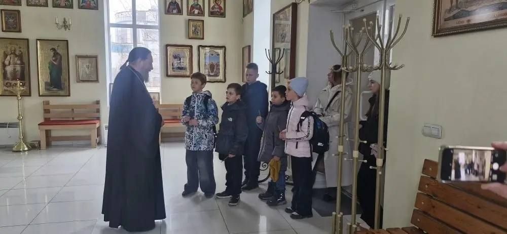 Экскурсию для школьников провёл клирик храма протоиерей Андрей Метелёв. Священнослужитель рассказал детям о том, как устроен православный храм, какие бывают архитектурные виды церквей, познакомил с внутренним убранством и главными святынями прихода. Особое внимание было уделено устройству алтаря — самому святому месту храма.