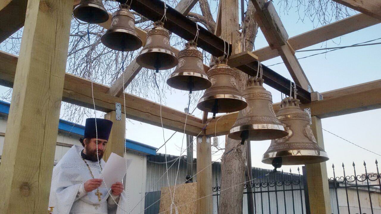 – Наш храм расположен среди торговых рядов, больших магазинов и торговых центров. И даже цирк-шапито недавно обосновался возле храма. Храм небольшой, невысокий и за торговыми центрами не очень заметен. С появлением звонницы, Бог даст, люди будут слышать, что здесь храм, здесь молитва. Колокола будут звать людей помолиться Богу, напомнят о вечности.
