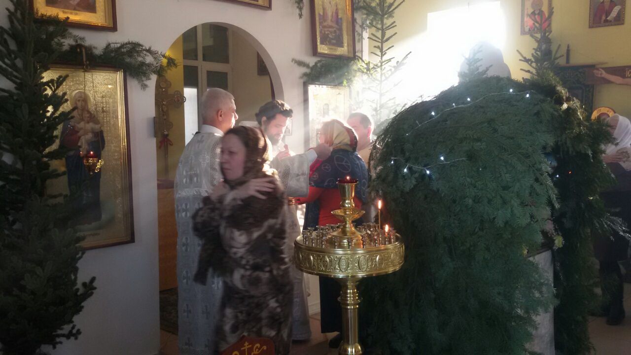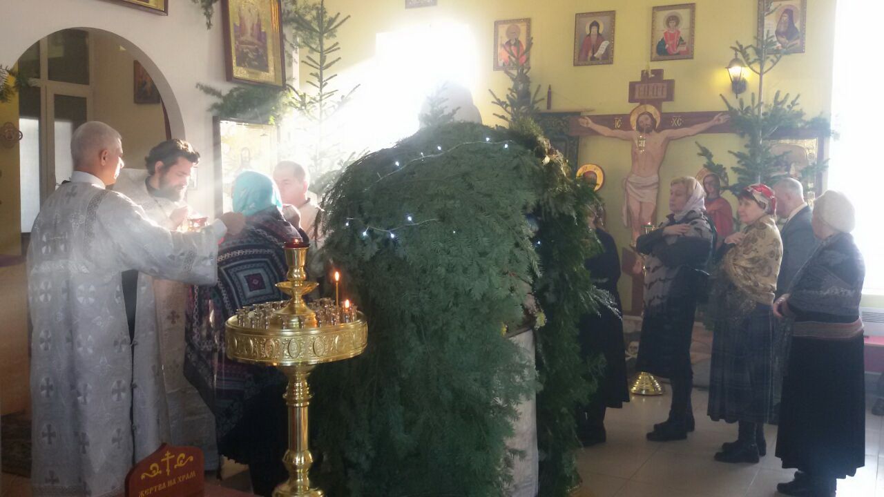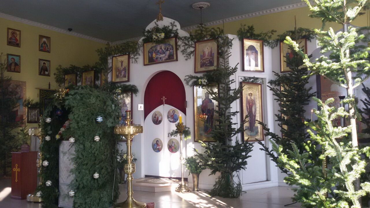 Сейчас наш приход, как и все остальные, готовит храм к празднику. Храм убираем, моем и будем украшать ёлками.