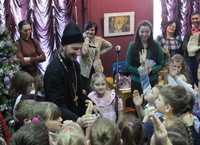 Завершился праздник викториной, которую устроил для детей и взрослых отец Димитрий. За правильные ответы дети получили сладкие подарки, а среди родителей разыграли 3 пригласительных билета на Митрополичью ёлку в Феско-холл.