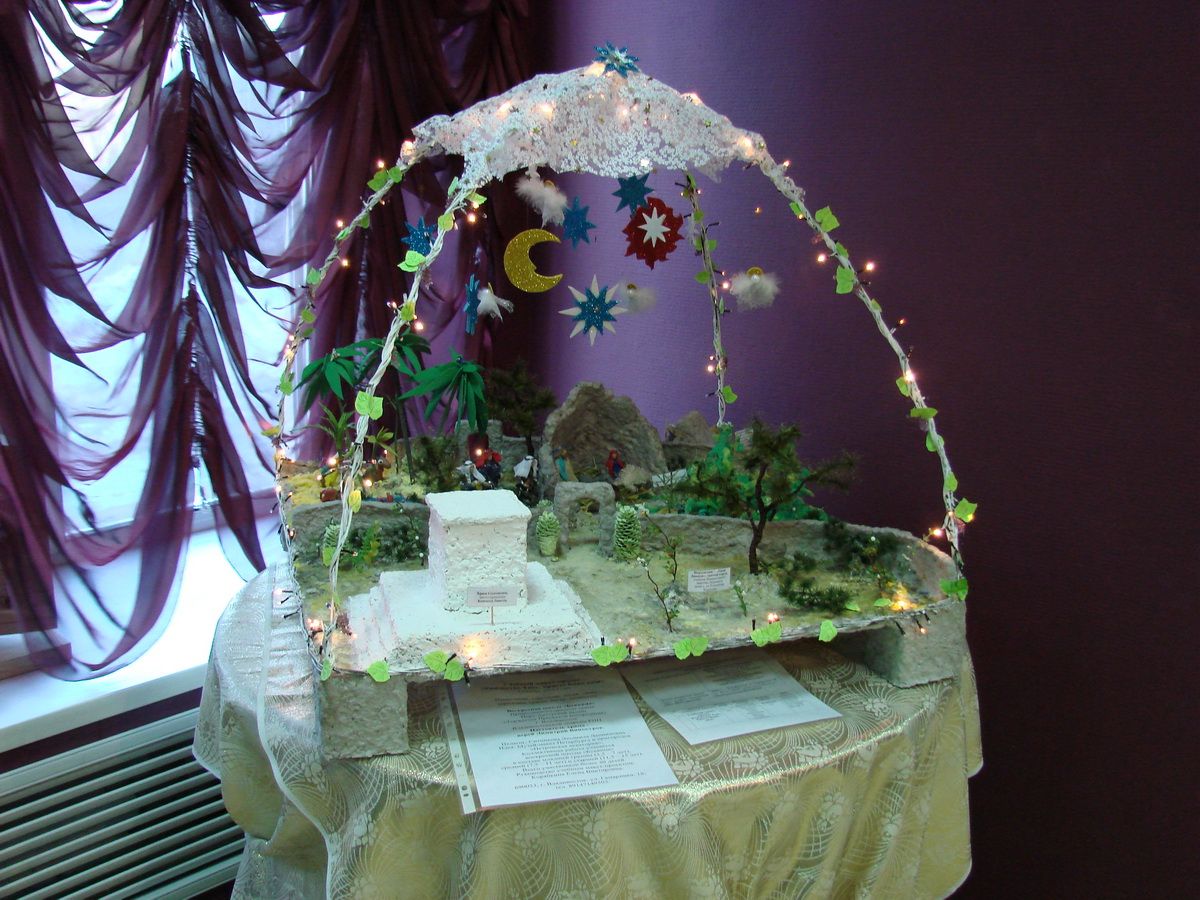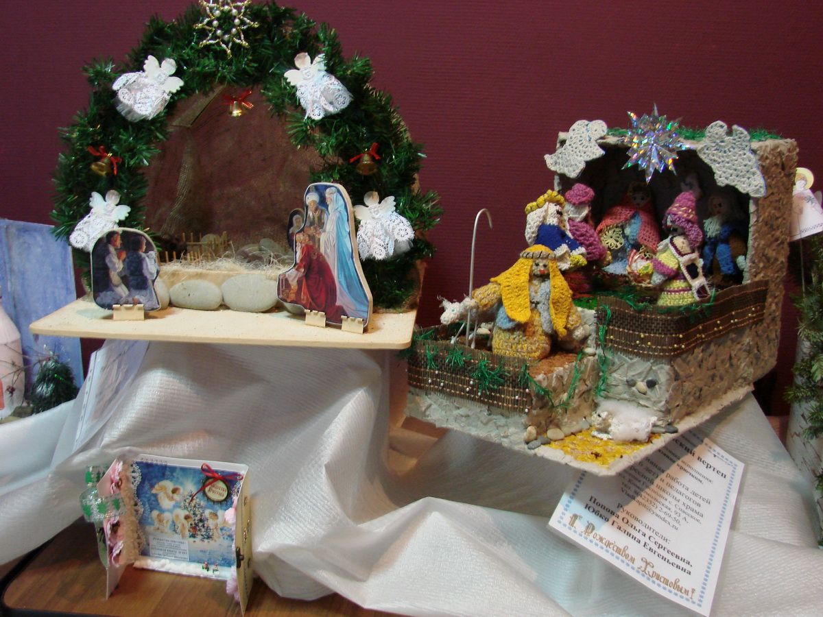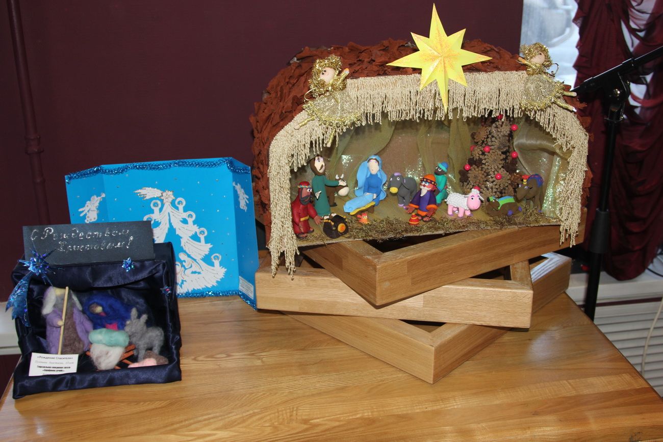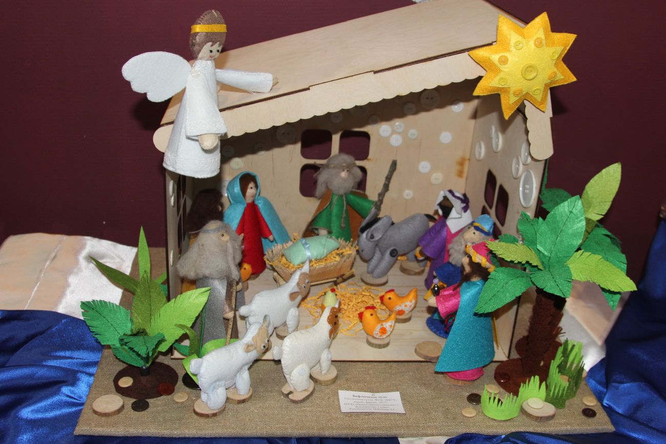 Вертепная композиция – это воспроизведение сцены Рождества с использованием объемных фигур или фигурок, выполненных из различного материала. Ребята в возрасте от 5 до 17 лет, используя бумагу, картон, ткань, фольгу, пластилин, природные материалы своими силами воспроизвели известную библейскую сцену Рождества Христова.
