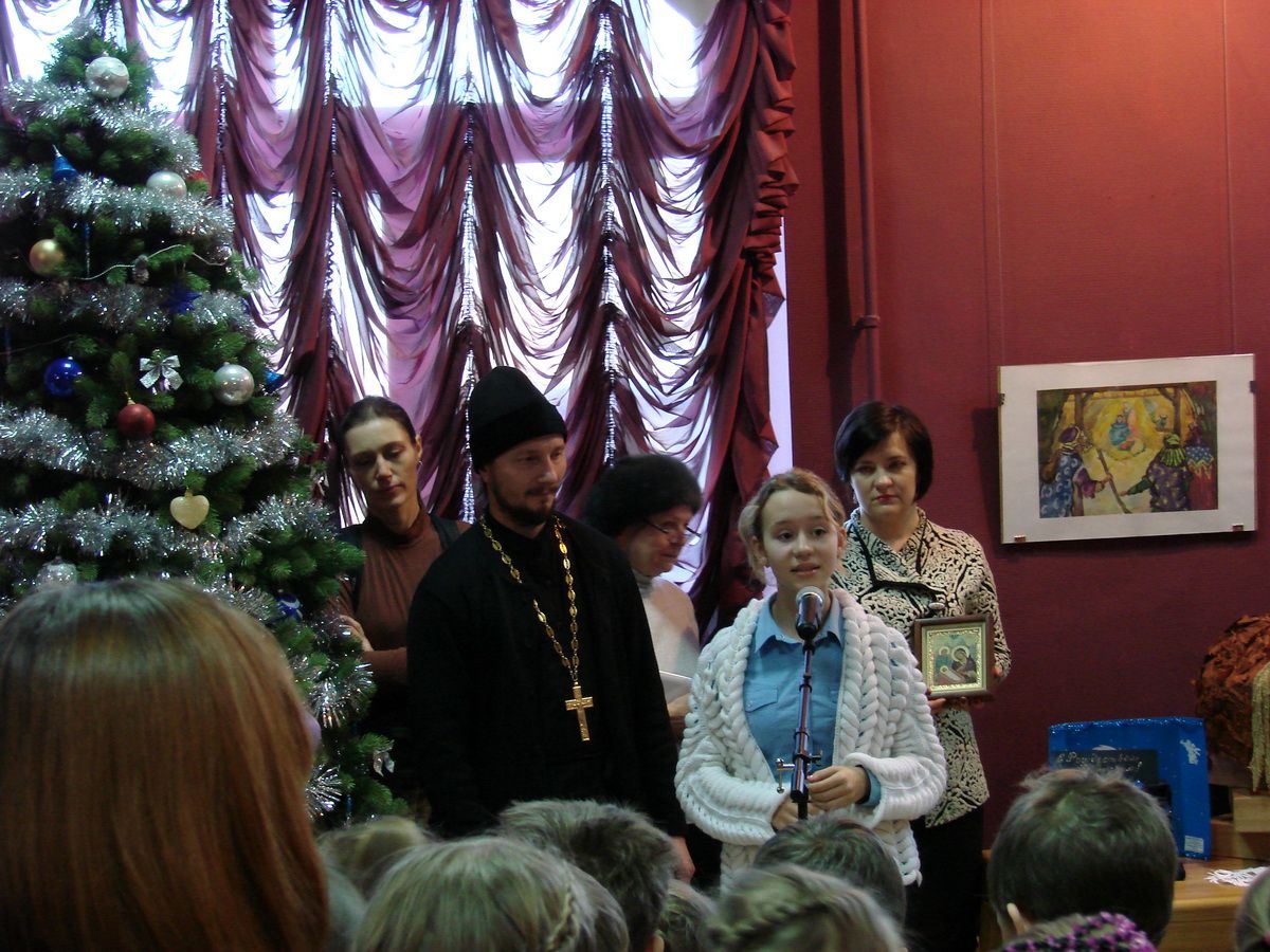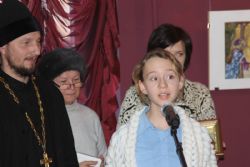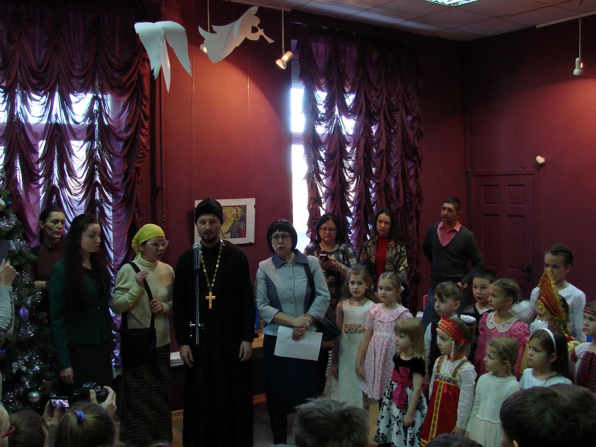 Главными виновниками торжества все же были дети. Многие пришли в картинную галерею в костюмах, а девочки - в белоснежных ангельских платьях. Ребята читали стихи, пели рождественские песни, отгадывали рождественские загадки и даже взрослые участвовали в викторине и получали призы. Это были рождественские пряники и билеты на Митрополичью ёлку, где 15 января подведут итоги конкурса вертепов.