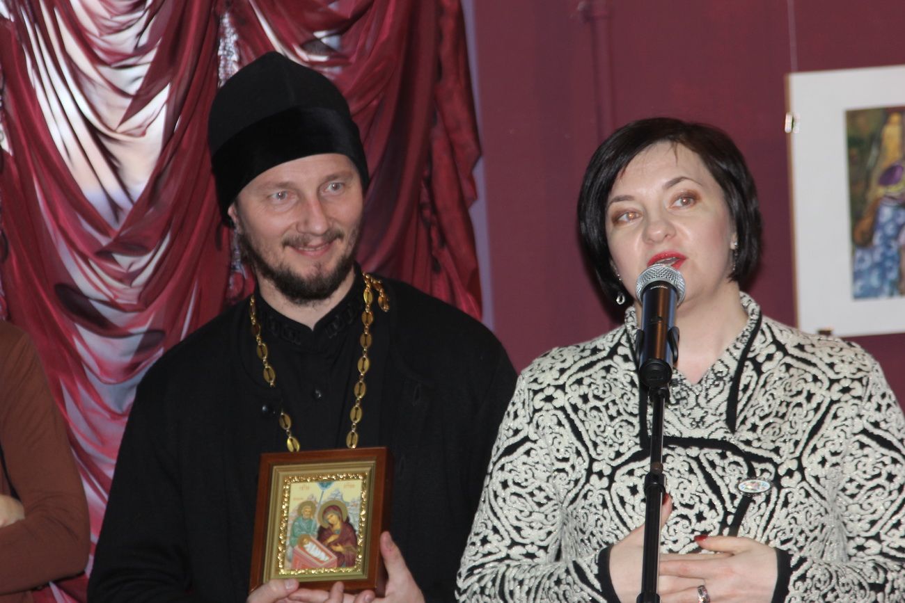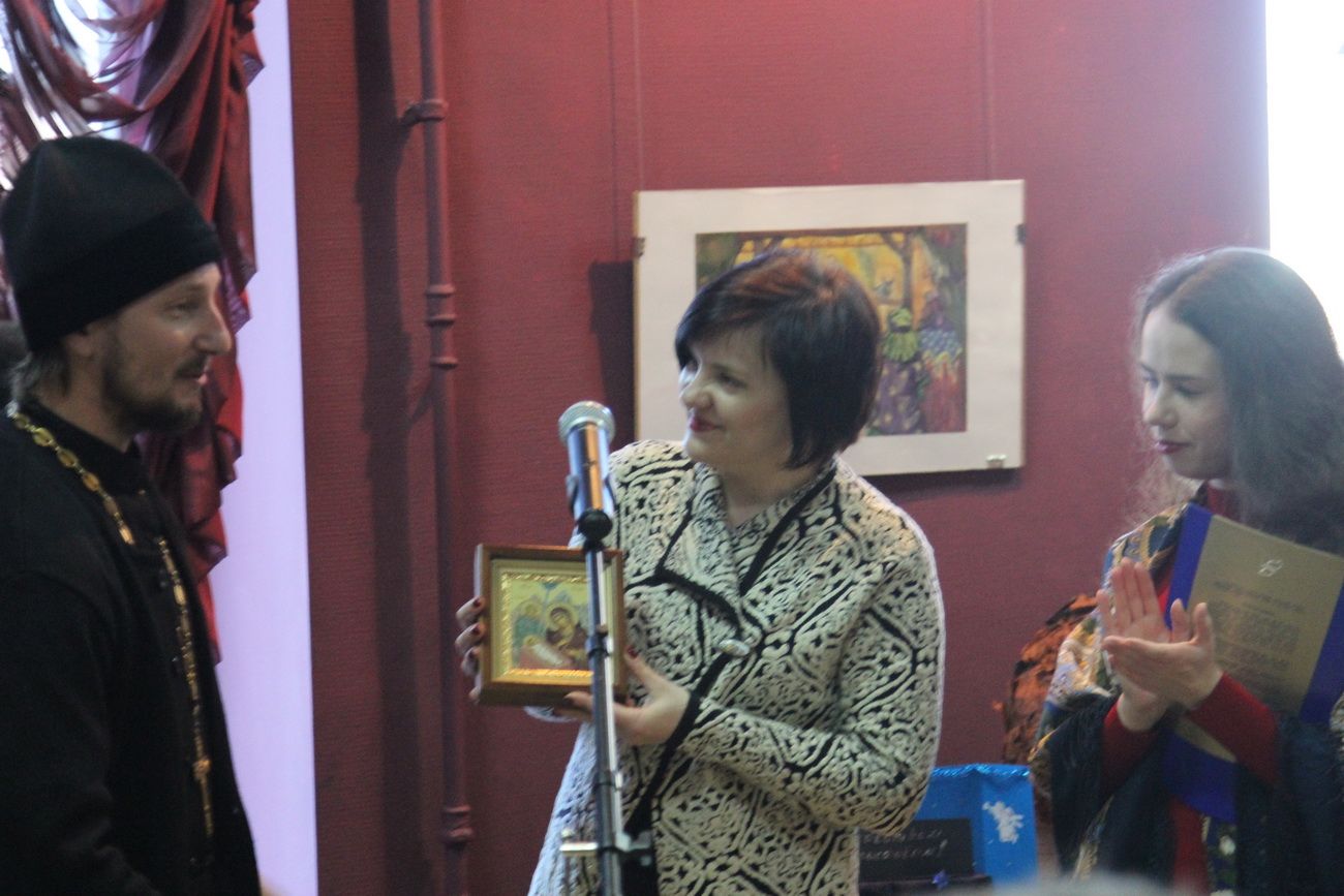 Приветственное слово сказала куратор выставки со стороны епархии, специалист отдела образования епархии Елена Дмитриевна Тимошенко.