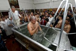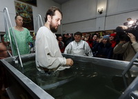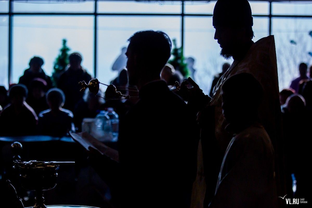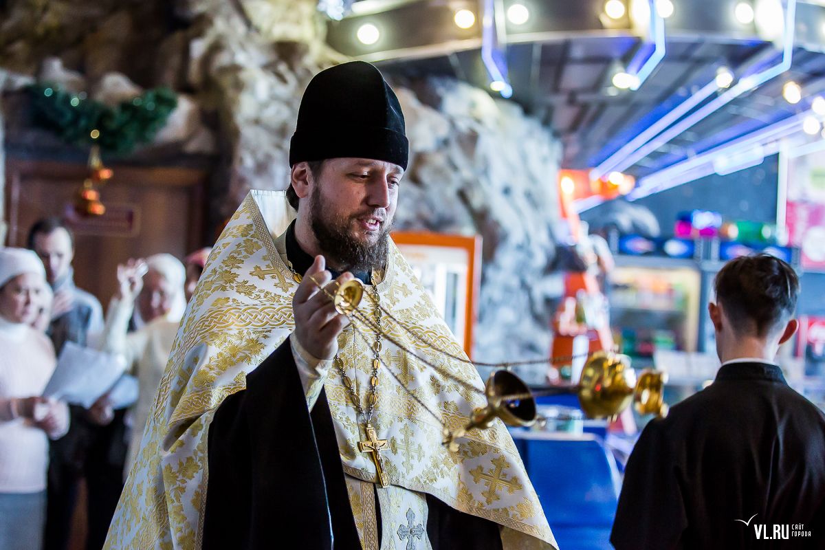 Традиционно отец Андрей в день праздника Крещения совершает водосвятный молебен и раздаёт крещенскую воду в кинотеатре "Галактика" (Владивосток, ул. Добровольского, 5).