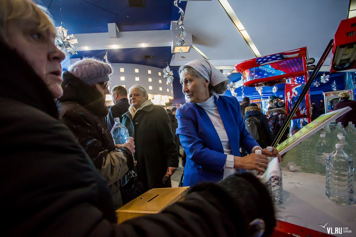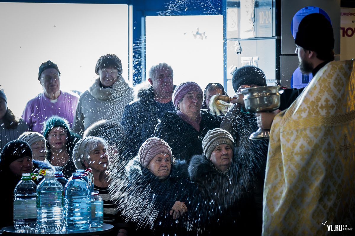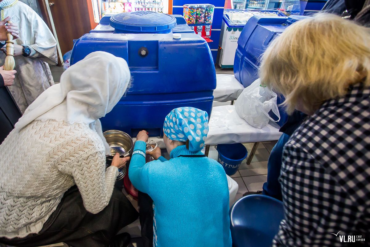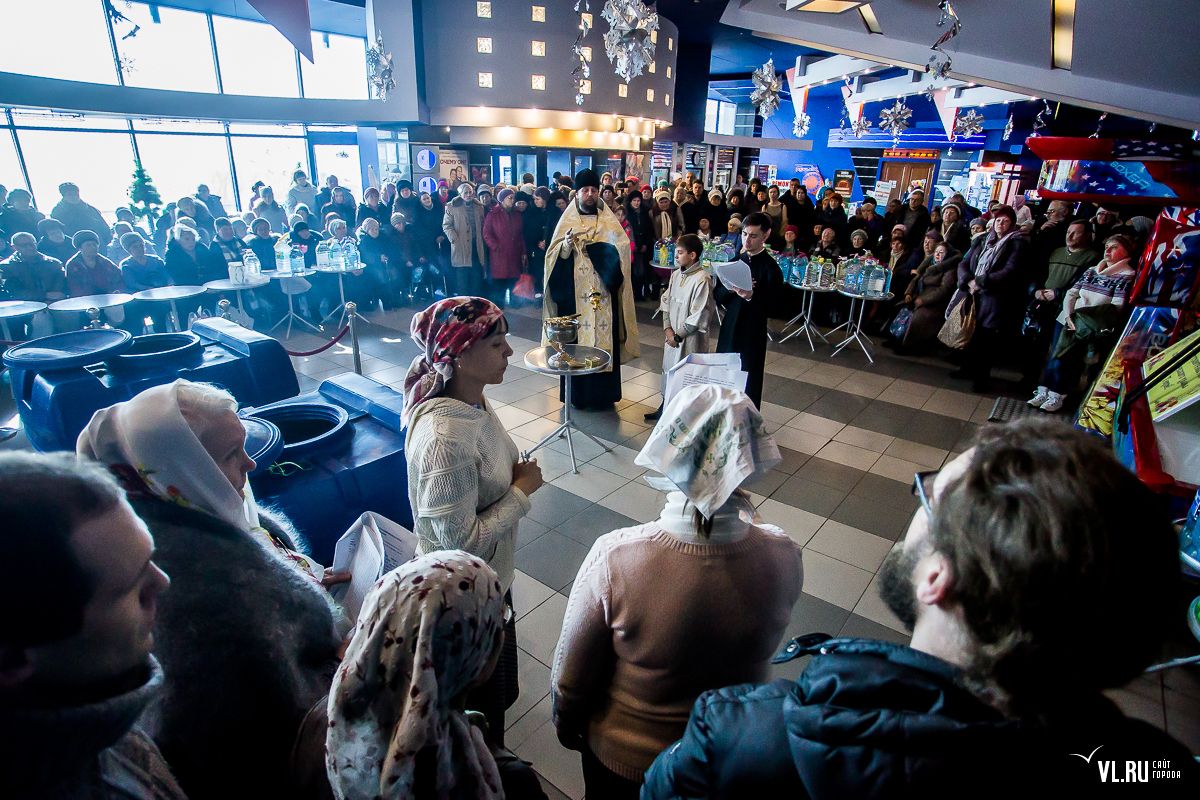 Для раздачи верующим в храме было заготовлено более 5 тонн чистой питьевой воды в больших ёмкостях. По окончании водосвятного молебна верующие могли набрать воду и совершить омовение в купели. В эту ночь в храме дежурили врачи и сотрудники МЧС. Присутствовали и Приморские СМИ. Как отметил настоятель храма о.Андрей Мельников, помощь медиков и спасателей никому не потребовалась, молебен прошёл чинно, без эксцессов. В купель окунулись около трёхсот человек.
