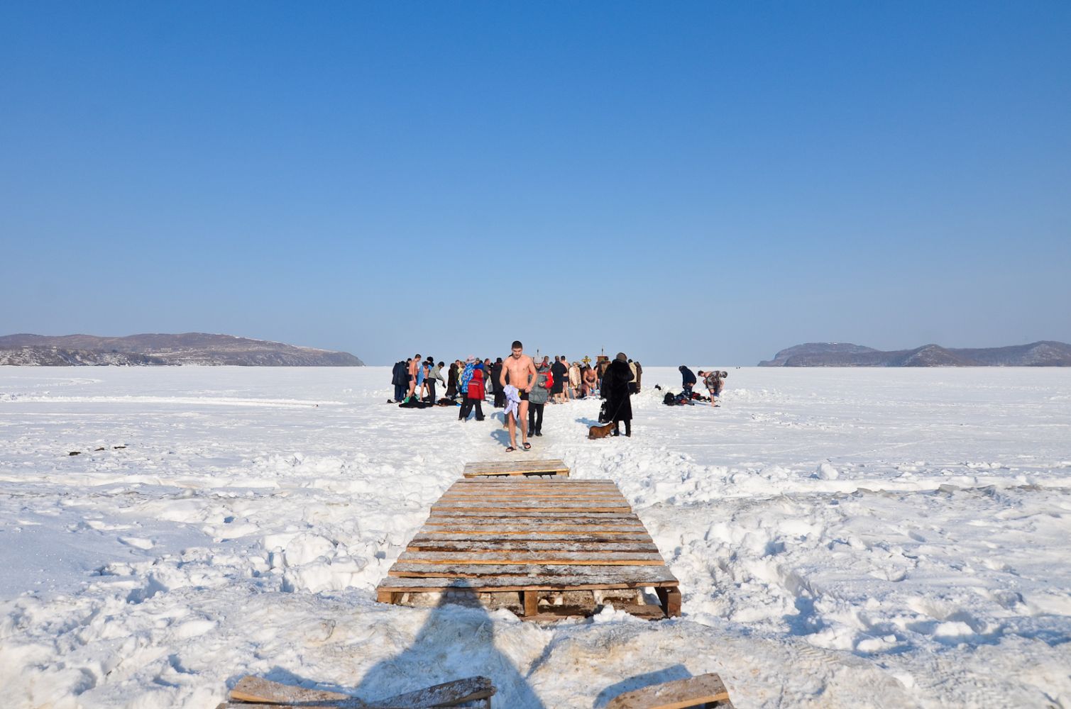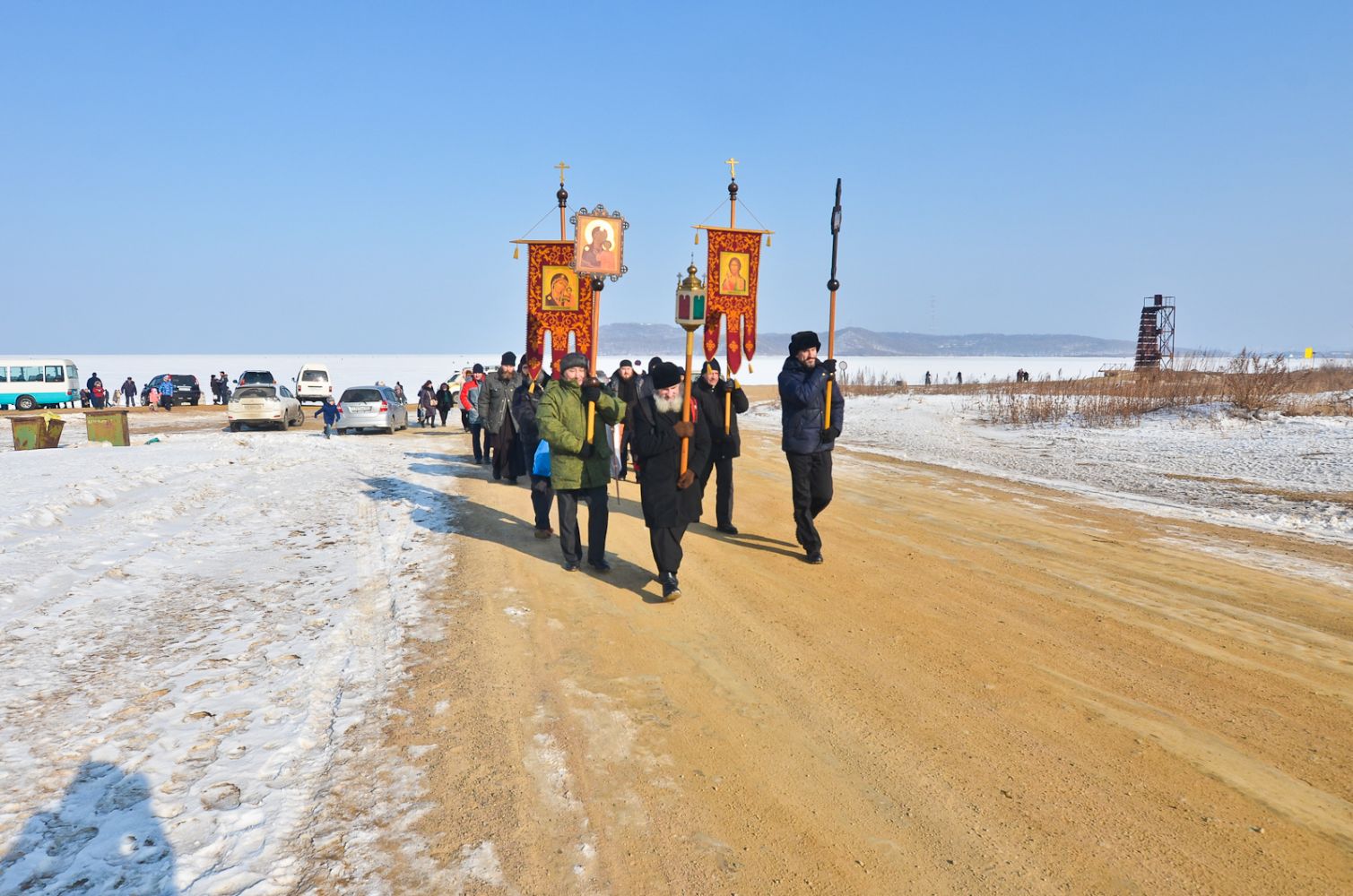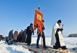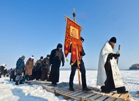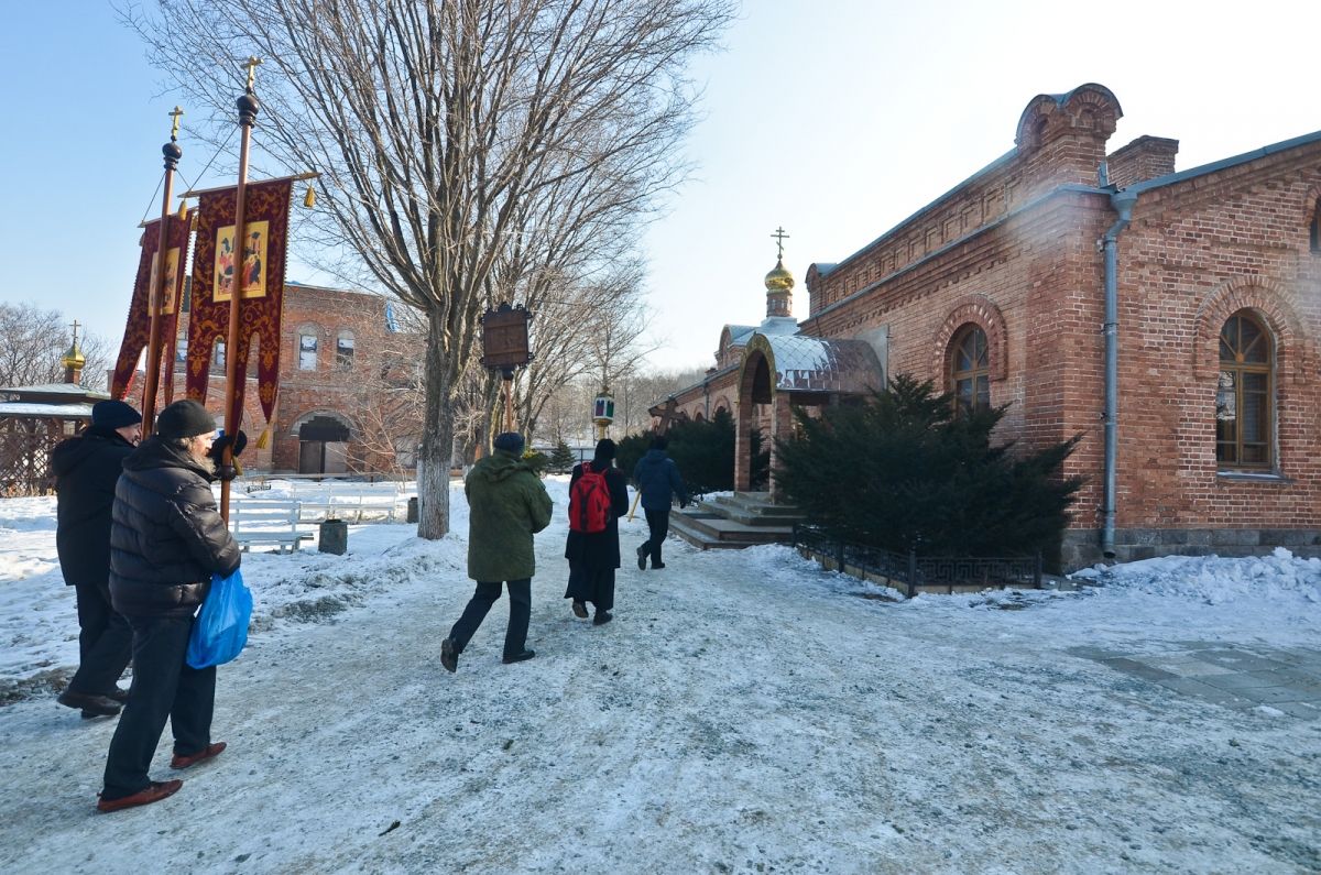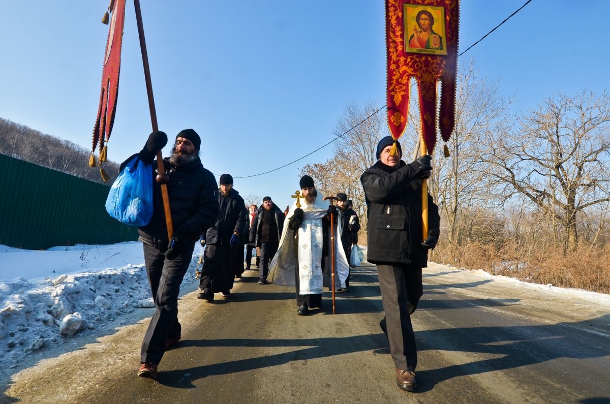 Владивосток. Остров Русский. 19 января 2017 года, в праздник Крещения Господа Бога и Спаса нашего Иисуса Христа, по окончании Божественной литургии в храме в честь преподобного Серафима Саровского Свято-Серафимовского мужского монастыря, наместник монастыря игумен Климент (Кривоносов) возглавил торжественный крестный ход от храма на лёд бухты Новик – всего около ста человек. К празднику Богоявления во льду вырубили «Иордань», оборудовали купальню сходнями и перилами, застелили досками подходы к «Иордани». Игумен Климент совершил чин Великого освящения воды. Совершив водосвятие, отец наместник окропил всех присутствующих святой водой, после чего все желающие могли окунуться в «Иордань».