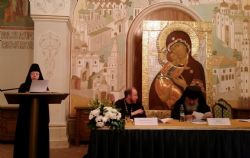 - В ходе ее работы прозвучало несколько докладов. Так, протоиерей Олег Митров поднял проблему истоков трагедии России в XX в. — он отметил, что событиям 1917 г. предшествовала целая эпоха отступления элиты и части народа от цивилизационного призвания, начавшаяся с петровских реформ. Игумения Домника (Коробейникова), настоятельница Ново-Тихвинского женского монастыря, сообщила о материалах к биографии и о нравственном христианском подвиге убиенных — царского помощника генерала И.Л. Татищева и матроса К.Г. Нагорного. А.В. Маркелов из Вятки сообщил о расследовании убийства в 1918 г. протоиерея Павла Дернова и его троих сыновей. Диакон Андрей Псарев из Зарубежной Церкви дал обзор канонизации святых в РПЦЗ и критериях, применявшихся в исследовании их жизней. Протоиерей Дмитрий Сазонов из Костромской епархии поднял проблему критериев оценки следственных дел убитых священнослужителей с целью удостоверения подлинности их содержания — эти мысли были развернуты в выступлении секретаря Синодальной комиссии по канонизации святых протоиерея Владимира Воробьева, назвавшего примеры липовых протоколов допросов на следствиях по делам в 1937 г. Отец Владимир отметил, что сегодня в епархиях расширяется деятельность по сбору сведений о подвижниках веры и мучениках, и предложил активнее поддерживать контакты с Синодальной комиссией.