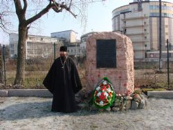 У постамента зажгли поминальные свечи. Владыка Иннокентий отслужил панихиду. Ему сослужил протодьякон Алексий Терехов.