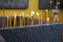 После панихиды все прошли в мемориальную часовню Воскресения Христова. Здесь в память о жертвах гонений поставили свечи.
