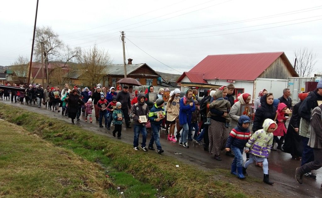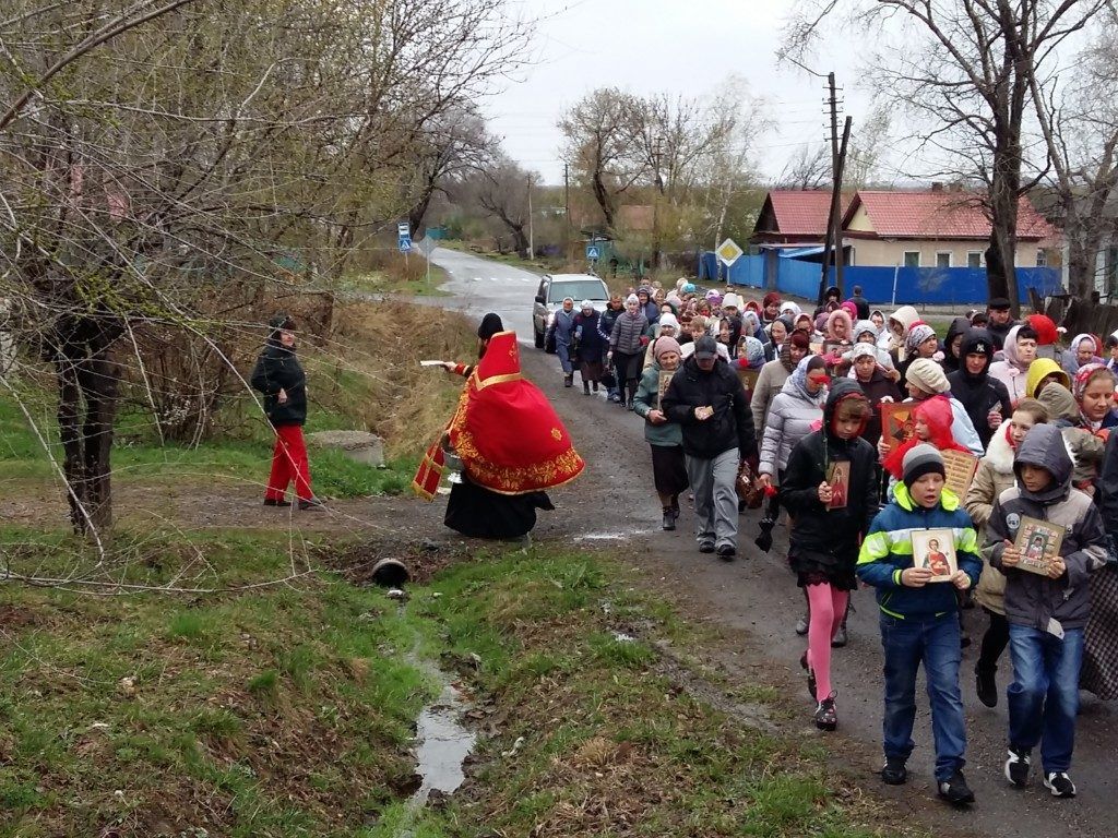 – Наш приход ежегодно совершает Крестный ход по улицам села Спасского. После совершения Божественной литургии и Причастия, настоятель митрофорный протоиерей Владимир Капитанюк в своей проповеди рассказал о Евангельской истории этого праздника, отметил важность и значимость женского служения Церкви. В церковной традиции его еще называют Православным женским днем. Батюшка о.Владимир поздравил всех прихожанок, каждой подарил цветы гвоздики и пасхальный номер журнала «Душа». Для каждой батюшка нашёл тёплые слова. На улице в это время была непогода, дул сильный ветер, шёл дождь. Настоятель громко спросил с амвона: «Готовы идти на Крестный ход?». Ответом было единое - «Да». Построились мужчины с хоругвиями, за ними священство, певчие и все прихожане, начиная от детей учащихся Воскресной школы и заканчивая пожилыми. Всем участникам Крестного хода раздали иконы. Впереди ехала машина с колоколами, батюшка дал возглас и хор запел тропарь Пасхи «Христос Воскресе из мертвых, смертию смерть поправ и сущим во гробех живот даровав». Крестный ход тронулся в путь. Все шли радостные и воодушевленные, с колокольным звоном, пением церковных песнопений, окроплением святой водой.
