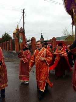 По окончании Божественной литургии и поздравления прихожанок с днём жен-мироносиц Крестные ходы двинулись по своим маршрутам.