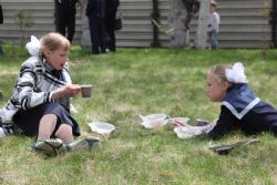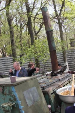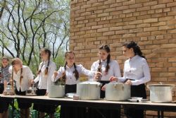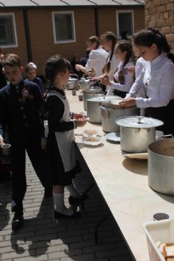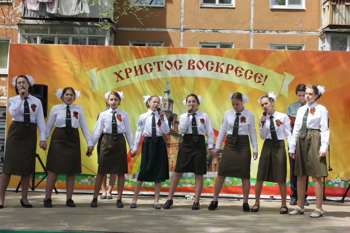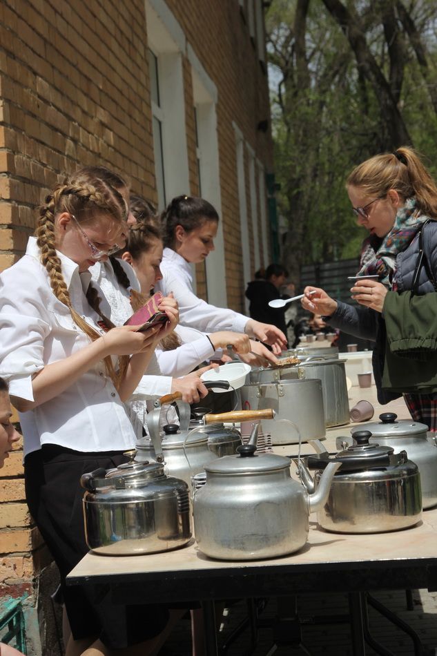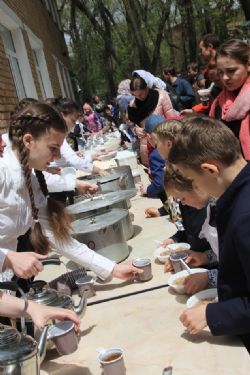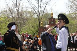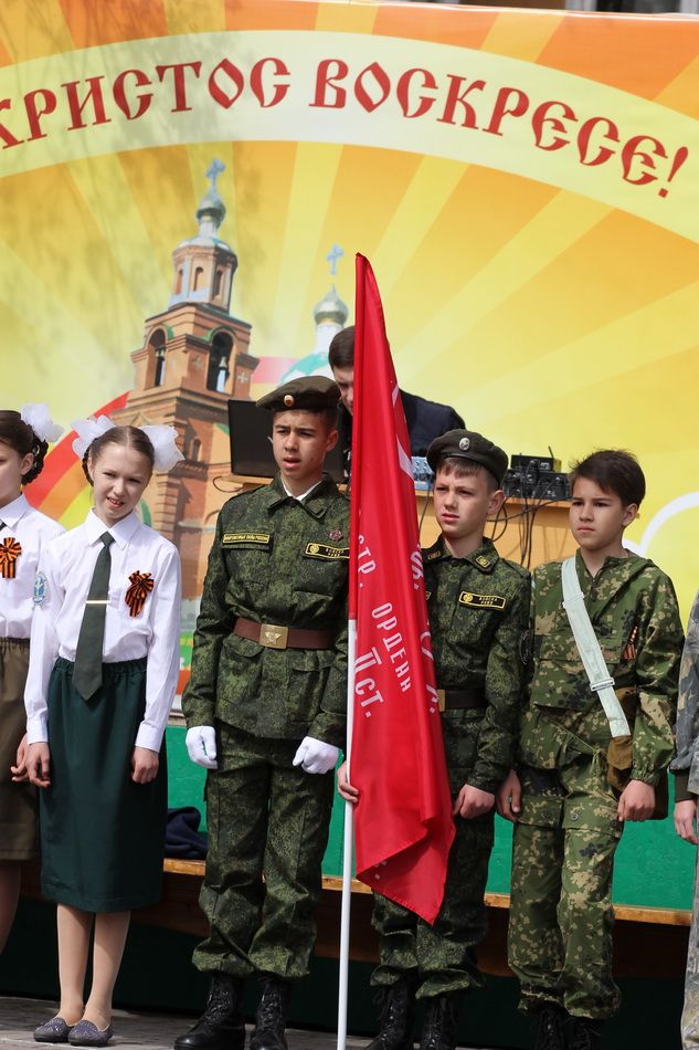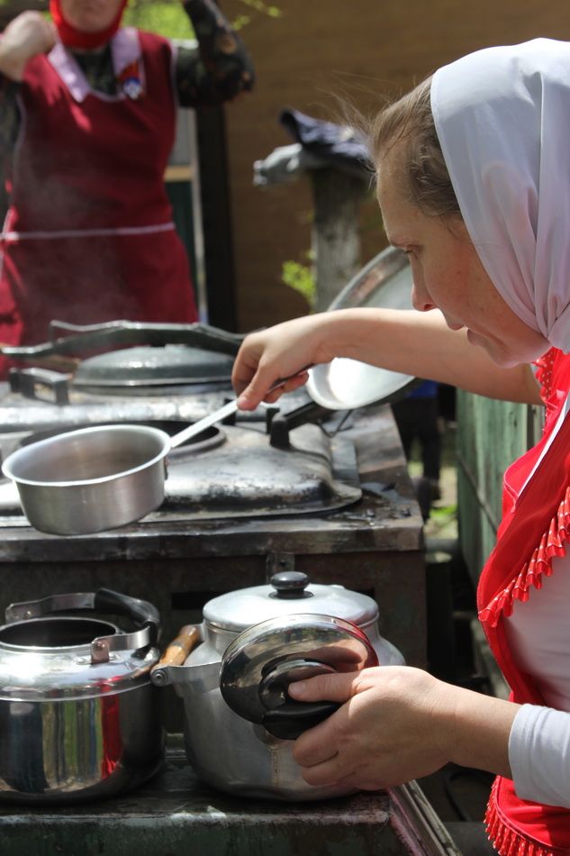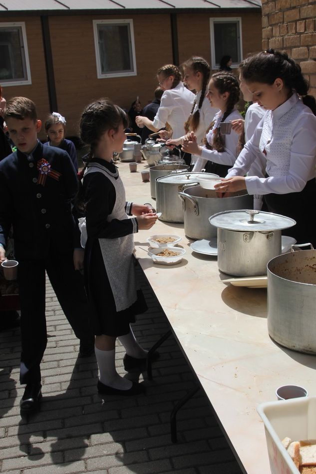 Колокольным звоном участников и гостей праздника пригласили на концерт в честь дня Победы. Все желающие могли подкрепиться солдатской кашей.