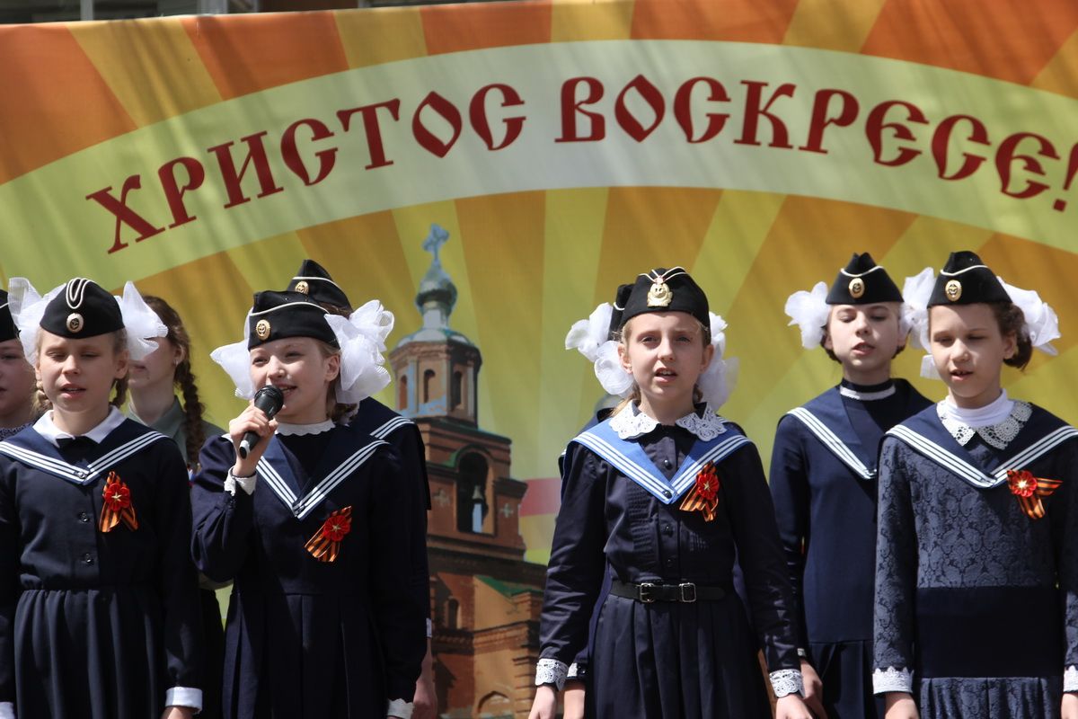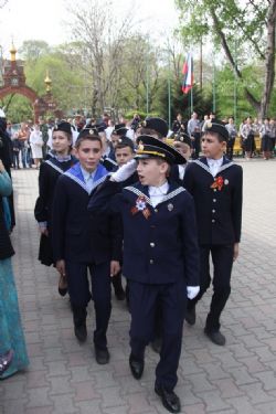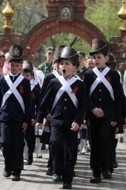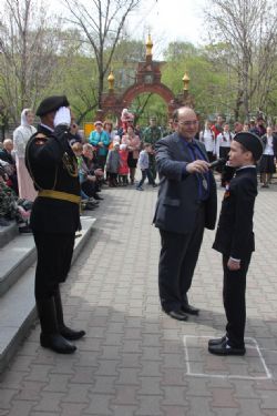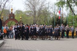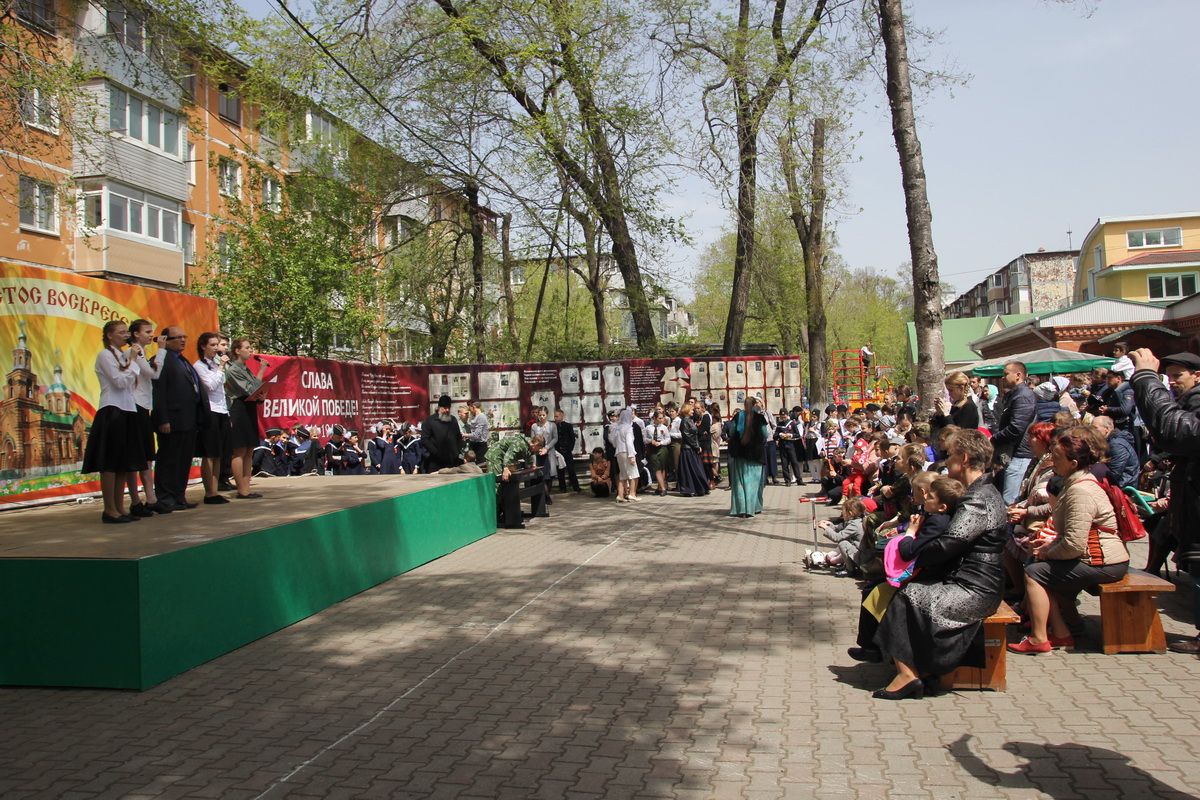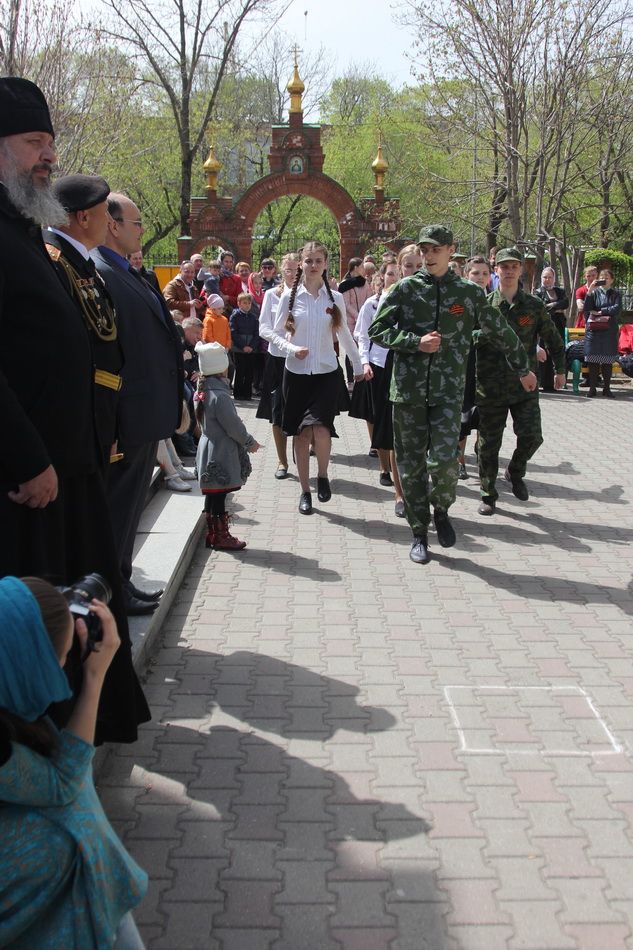 Владивосток. 7 мая 2017 года в Православной гимназии Владивостока по окончании воскресной Божественной литургии на плацу перед храмом святых равноапостольных Кирилла и Мефодия, учителей Словенских по сложившейся традиции перед праздником 9 мая прошёл праздник «Спасибо деду за Победу».