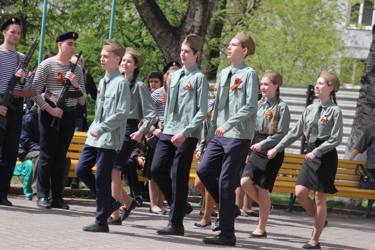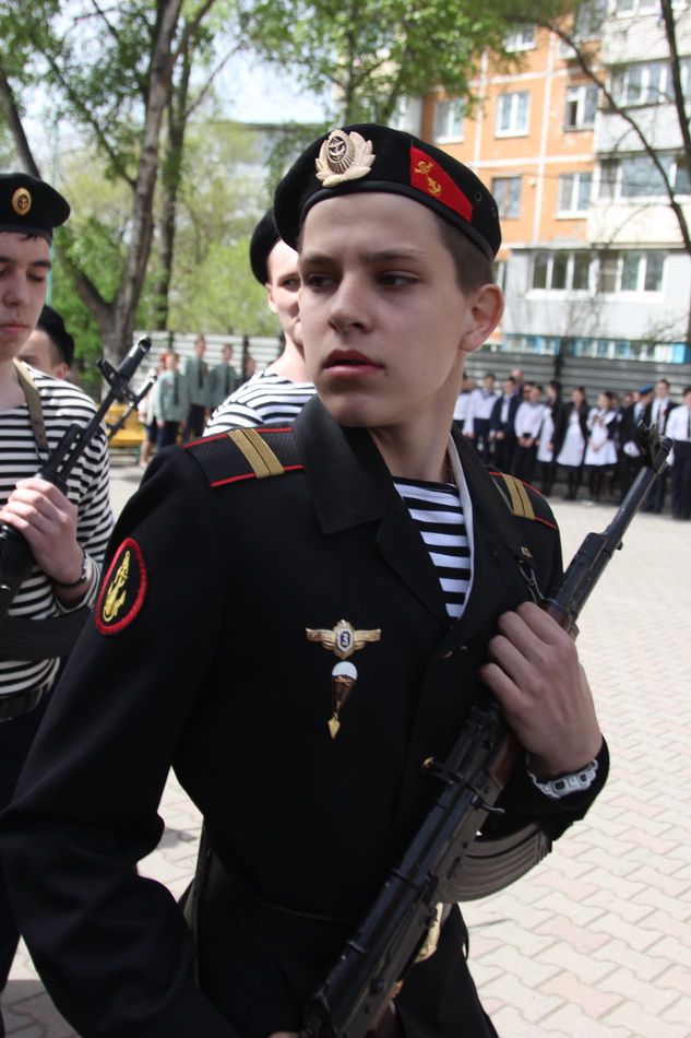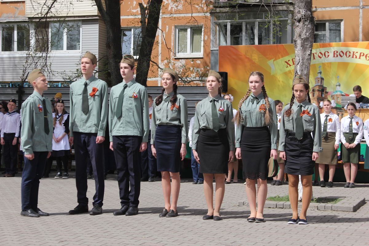 В течение нескольких недель команды готовились к этому дню: разучивали песни, тренировались ходить строевым шагом, подбирали соответствующую форму. Ярко, красиво, эмоционально выступили ребята всех классов. Каждый класс отличался формой, выправкой. Участники смотра прошли строем, чеканя шаг, пропели военные песни.