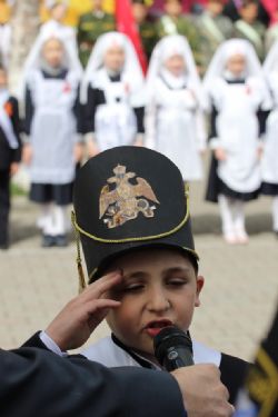В первой части праздника прошёл «Смотр строя и песни» в котором приняли участие все классы гимназии. Каждый участник конкурса постарался показать свои только самые положительные качества.