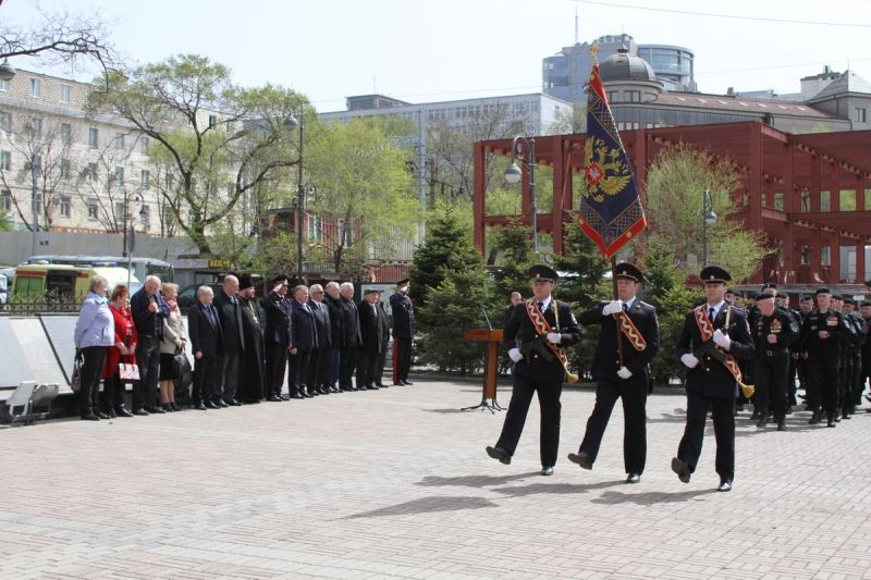 Открывая митинг, начальник УМВД России по Приморскому краю генерал-майор полиции Николай Афанасьев отметил: «Сотрудники органов внутренних дел внесли достойный вклад в общее дело Победы в Великой Отечественной войне. Многие из них погибли на поле боя. Более полутора тысяч сотрудников милиции Приморья защищали Родину на полях сражений Великой Отечественной. Двое из них удостоены звания Героя Советского Союза».