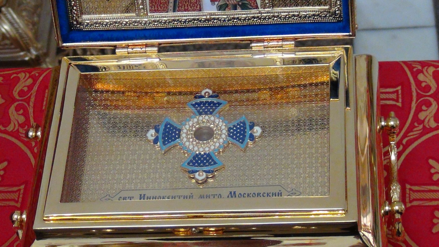 - В церковной истории немало замечательных подвижников, последователей просветителей славян святых братьев Кирилла и Мефодия. В XIX веке таким выдающимся миссионером стал святитель Иннокентий Вениаминов — мы знаем его как первого апостола Сибири и Америки, внесшего вклад в основание Дальнего Востока. Уверены, что лучшей формой почитания духовного наследия миссионера станет пребывание в нашем храме частицы его святых мощей. Эта святыня была передана мне 20 лет назад, при пострижении в монашество с именем Иннокентия Вениаминова, передана от благочинного Свято-Троицкой Сергиевой Лавры, где мощи святителя были обретены в конце 1990-х годов.