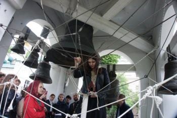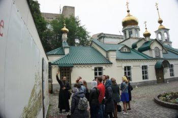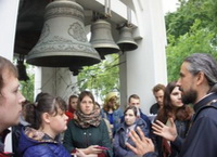 Знакомство продолжили на улице, где на стенде представлена история самого первого храма Приморья. На звоннице разрешили звонить в колокола. Побывали гости в помещении Воскресной школы, в просфорне, а завершилось знакомство с храмом в трапезной за чашкой чая. У студентов возникло много вопросов, на которые ответил отец Олег.