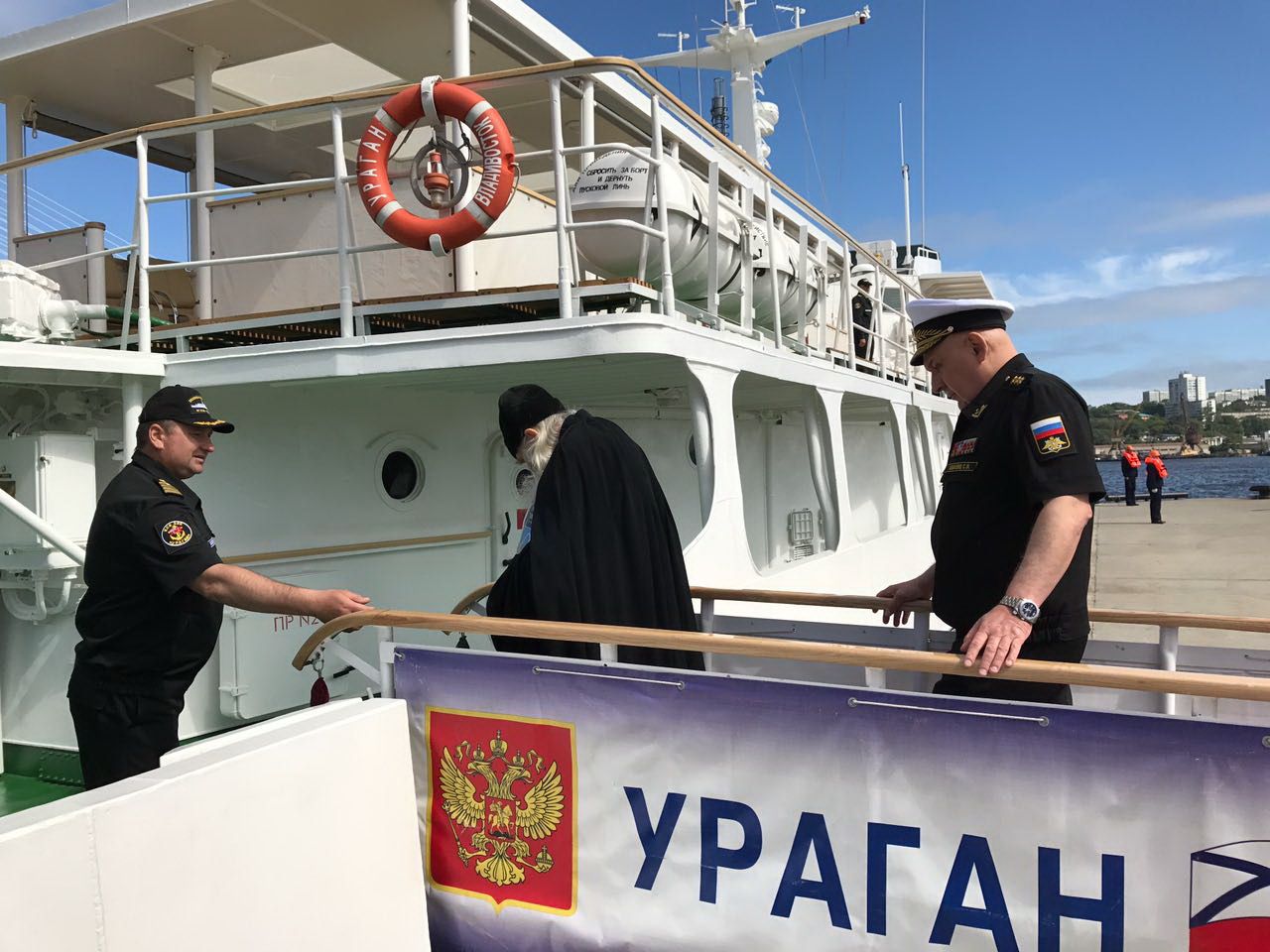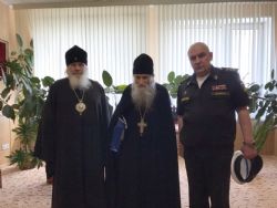 В тот же день митрополит Вениамин, схиархимандрит Илий, участники миссионерской экспедиции посетили штаб ТОФ, где встретились с командующим ТОФ адмиралом Сергеем Иосифовичем Авакянцем. На катере командующего «Ураган» гости отправились на о. Русский в Свято-Серафимовский мужской монастырь.