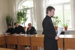 Владивосток. 30 июня 2017 года в Духовном центре подготовки церковных специалистов Владивостокской епархии состоялась защита курсовых работ студентами 3-го и 2-го курсов по направлению «церковнослужитель», поступивших на обучение по программе духовного училища. Студенты выступили перед аттестационной комиссией под руководством Поповкина А. В., к. ф. н., зав. кафедрой философии Инстиута истории, антропологии и этнографии ДВО РАН.