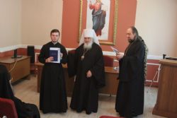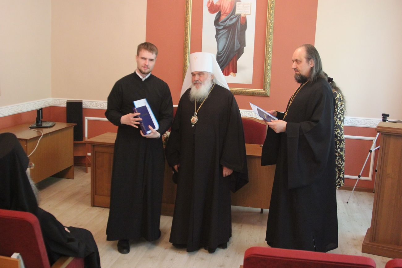 Заместитель директора по учебной работе протоиерей Ростислав Мороз подвел итоги учебного года.В 2017 году завершили образование по направлению «церковнослужитель» 7 выпускников: 4 - очное отделение и 3 – заочное. У всех выпускников средний балл выше 4-х.