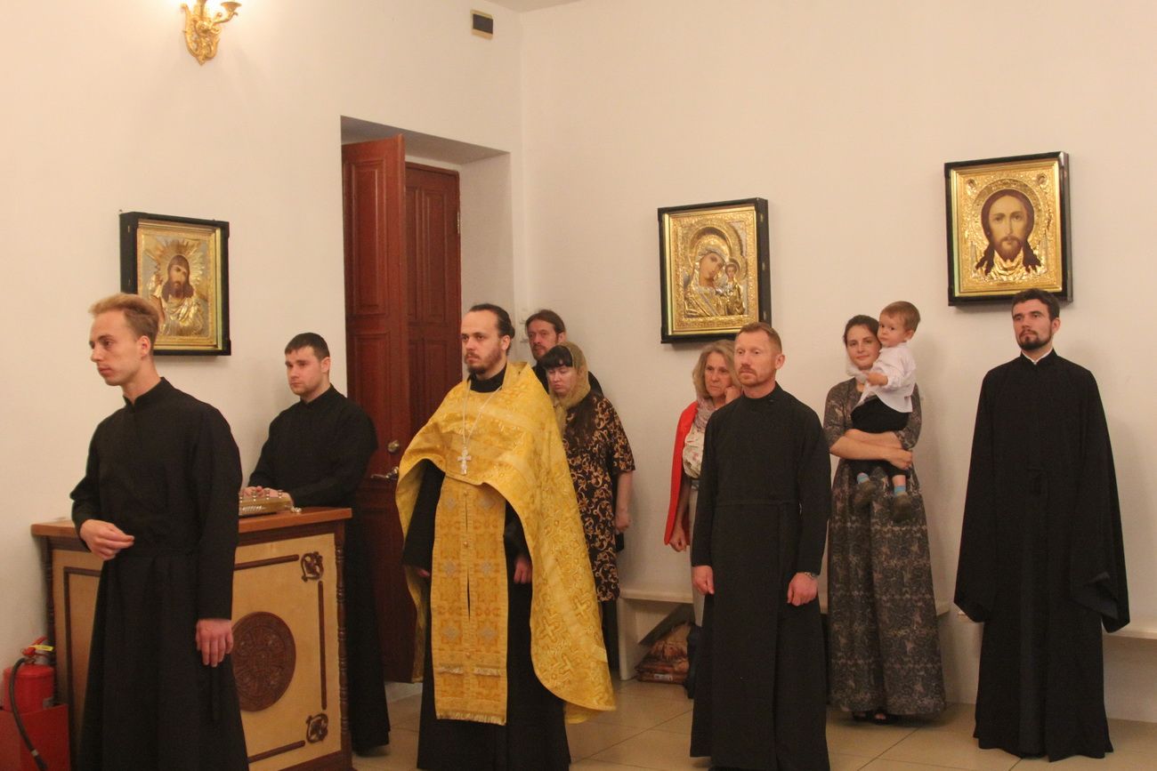 Возглавил Божественную литургию епископ Уссурийский Иннокентий, викарий Владивостокской епархии, заместитель директора ЦПЦС по административной работе. Ему сослужил настоятель храма иеромонах Марк (Корнилов), духовный наставник ЦПЦС.
