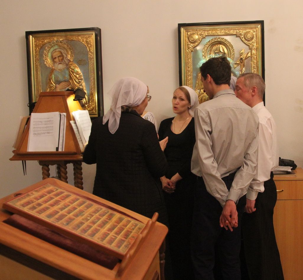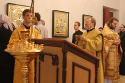 Песнопения исполнил хор Успенского храма Владивостока под управлением Юлии Геннадьевны Лосевой. За литургией в домовом храме молились выпускники духовного центра,учащиеся, преподаватели и работники Духовного центра, сотрудники епархиального управления, члены семей священнослужителей.