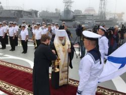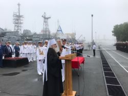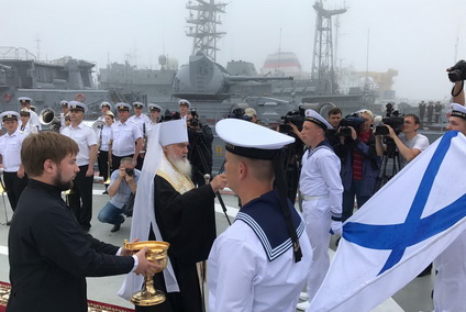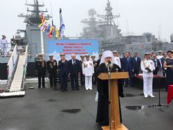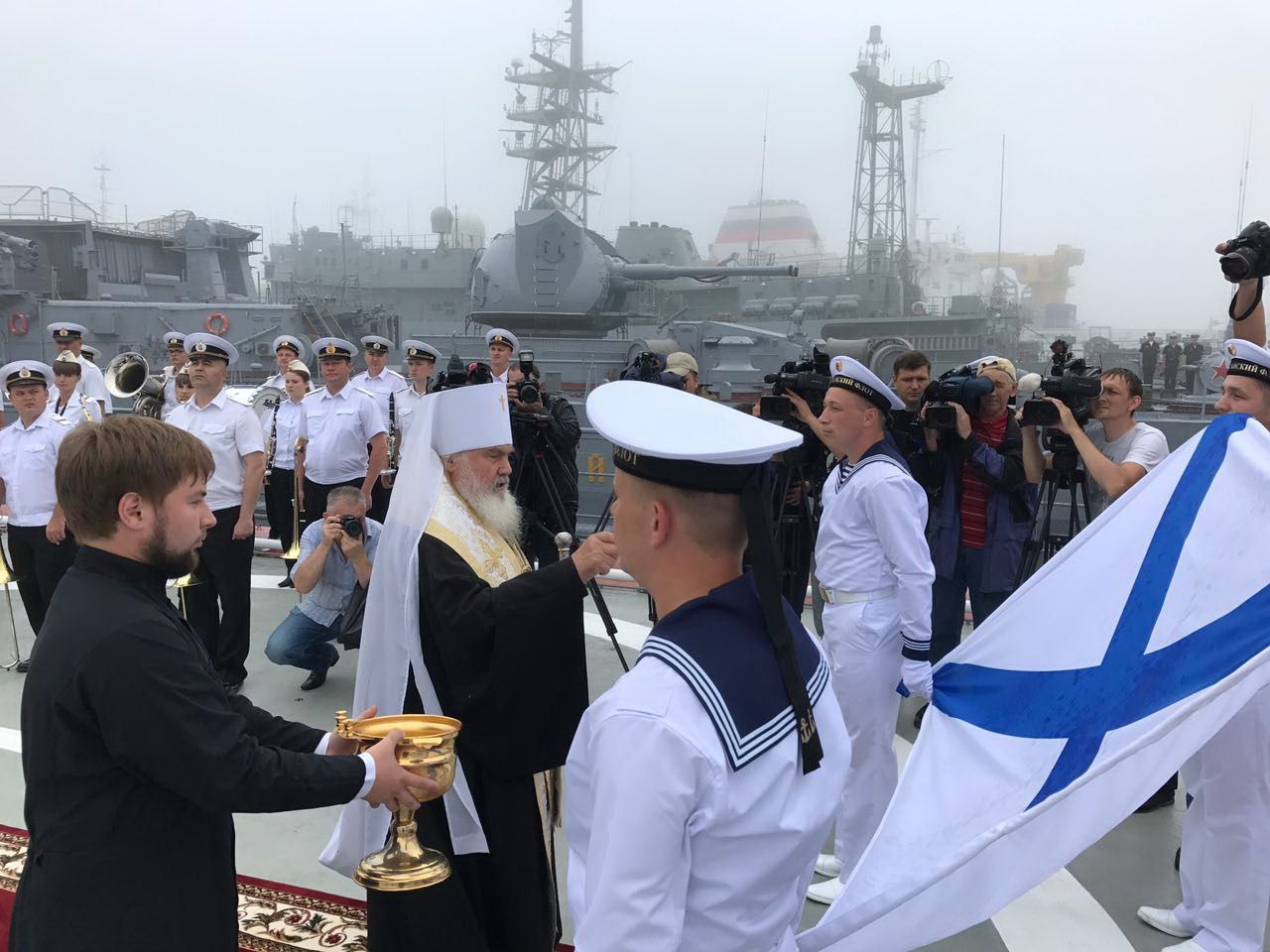 Митрополит Вениамин освятил флаг корвета "Совершенный"