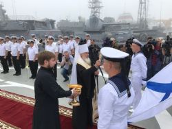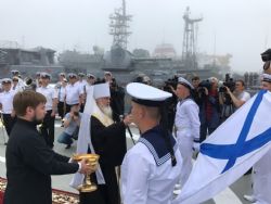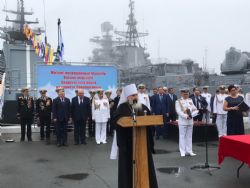 После молебна митрополит Вениамин вручил командиру корабля Казанскую икону Божией Матери. В пастырском слове глава Приморской митрополии отметил, что освящение Андреевского флага состоялось накануне празднования Казанской иконы Божией Матери.