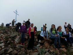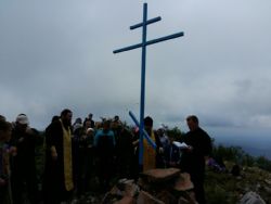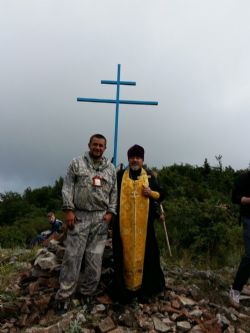 Шли вместе с бессменным помощником, спортивным педагогом-инструктором – Ириной Моляренко (огромное спасибо!). Хочется отметить, что бывшие ученики Ирины Александровны – Загорянский Владислав и Андрющенко Вячеслав, с друзьями специально прибыли из г. Владивостока для восхождения. Владислав, будучи ещё школьником, в далёком 2004г, впервые поднялся с группой прихожан на г. Лысая. Спустя 13 лет, он вновь с нами. Благодарим ребят за помощь, оказанную в вознесении Креста на вершину горы.