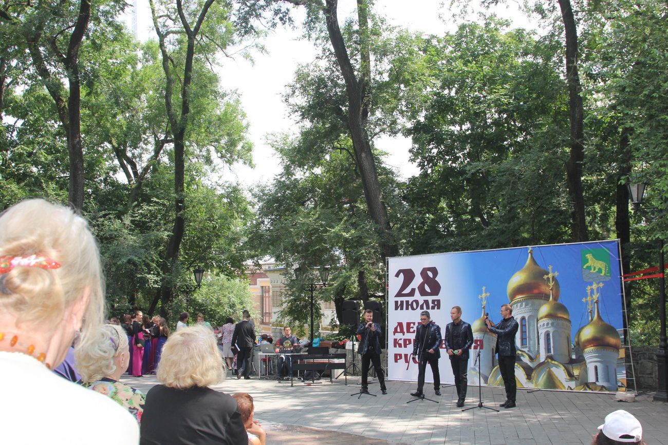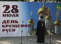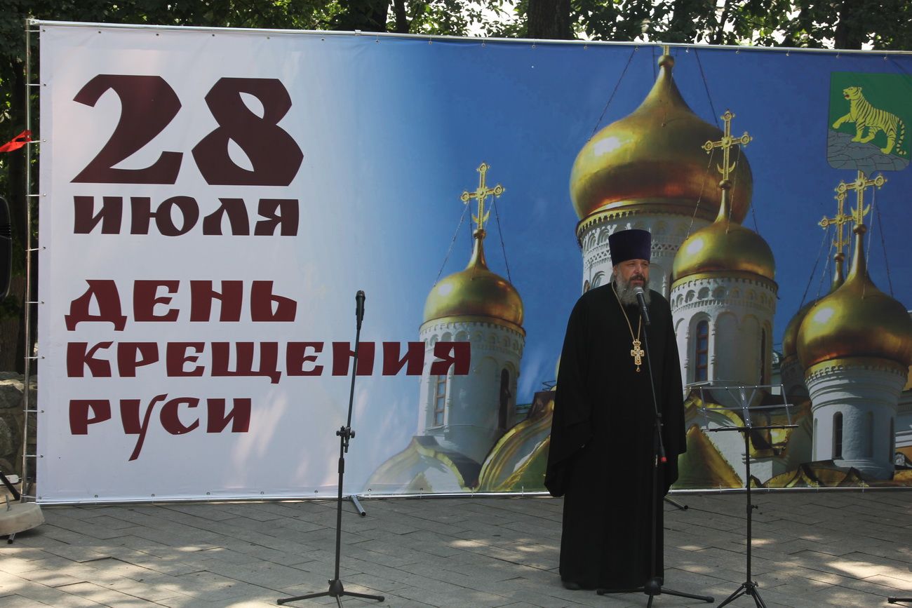 Владивосток. В Адмиральском сквере состоялся праздничный концерт в честь Дня Крещения Руси, который подготовила администрация города. Начался праздник поздравлением митрофорного протоиерея Игоря Талько, секретаря епархии, настоятеля храма свв. Кирилла и Мефодия. Батюшка поздравил горожан с праздником и рассказал о смысле этого праздника.