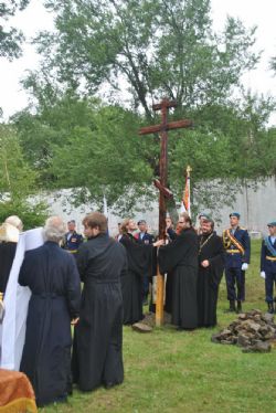 Митрополит Вениамин совершил чин освящения земли под строительство храма и заложил первый камень. На месте будущего храма был установлен крест.