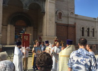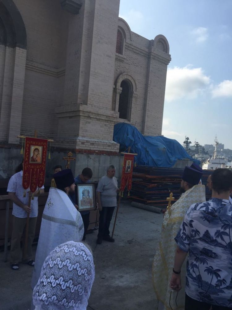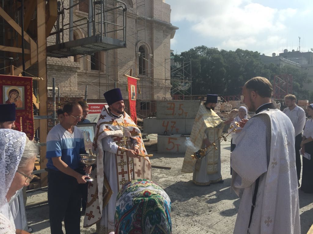 Владивосток. 19 августа 2017 года в престольный праздник во временном храме строящегося Спасо-Преображенского собора председатель приходского совета благочинный I округа Владивостокской епархии протоиерей Димитрий Федорин в сослужении благочинного II округа, ключаря храма Покрова Пресвятой Богородицы города Уссурийска протоиерея Сергия Якутова и клирика храма иерея Александра Карапетяна отслужили праздничную Божественную литургию. был совершён крестный ход к строящемуся собору. По традиции в этот день по окончании Богослужения освятили начатки урожая.