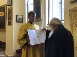 Владивосток. 27 августа 2017 года в Неделю 12-ую по Пятидесятнице, в день перенесения мощей преподобного Феодосия Печерского митрополит Владивостокский и Приморский Вениамин совершил всенощное бдение и Божественную литургию в Свято-Никольском кафедральном соборе города Владивостока. За Божественной литургией митрополит Вениамин рукоположил во диакона выпускника Владивостокского Духовного центра подготовки церковных специалистов иподиакона Михаила Тутаева.