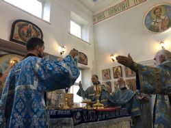 Вечером того же дня митрополит Вениамин совершил всенощное бдение с чином Погребения плащаницы Пресвятой Богородицы в Покровском кафедральном соборе города Владивостока.