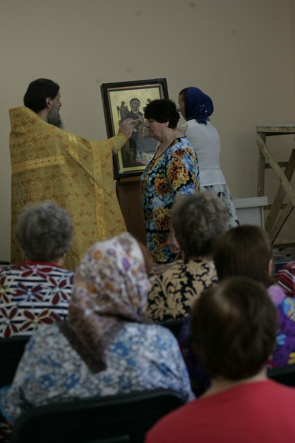 В актовом зале перед принесенной иконой руководитель епархиального отдела церковной благотворительности и социальному служению протоиерей Александр Талько совершил молебен с чтением акафиста. Затем состоялась беседа, в которой священнослужитель рассказал о духовных аспектах православного вероучения в свете исцеления телесных недугов и ответил на интересующие пациентов вопросы. Все пришедшие на молебен и встречу со священником смогли приложиться к чудотворному списку.