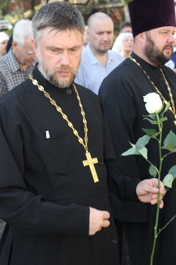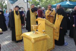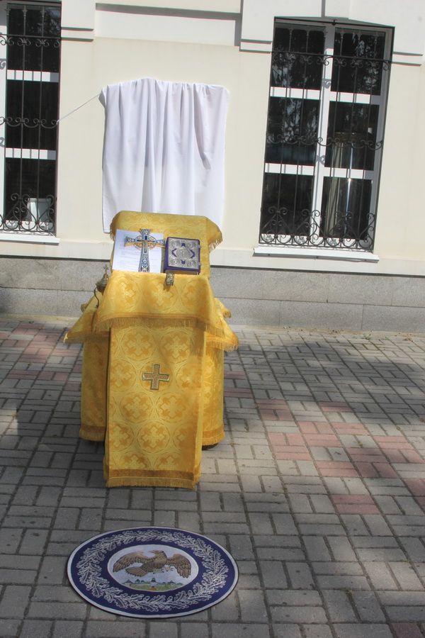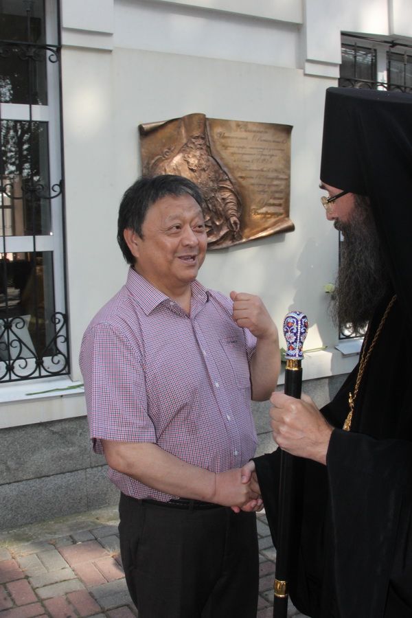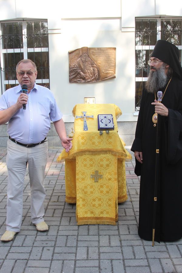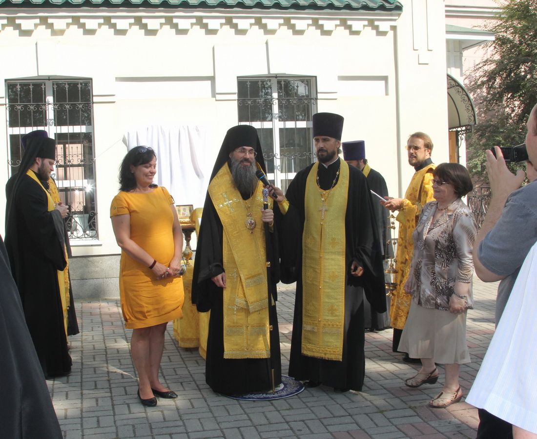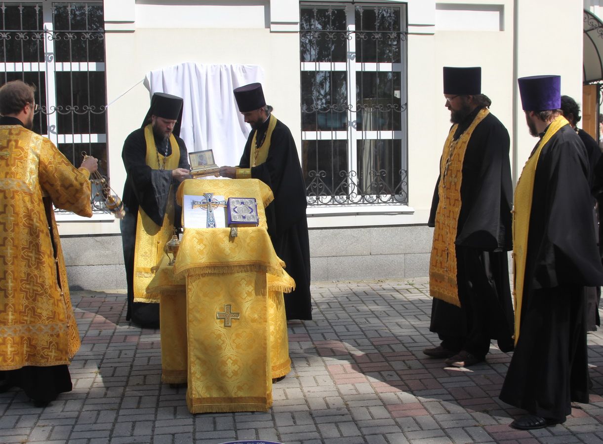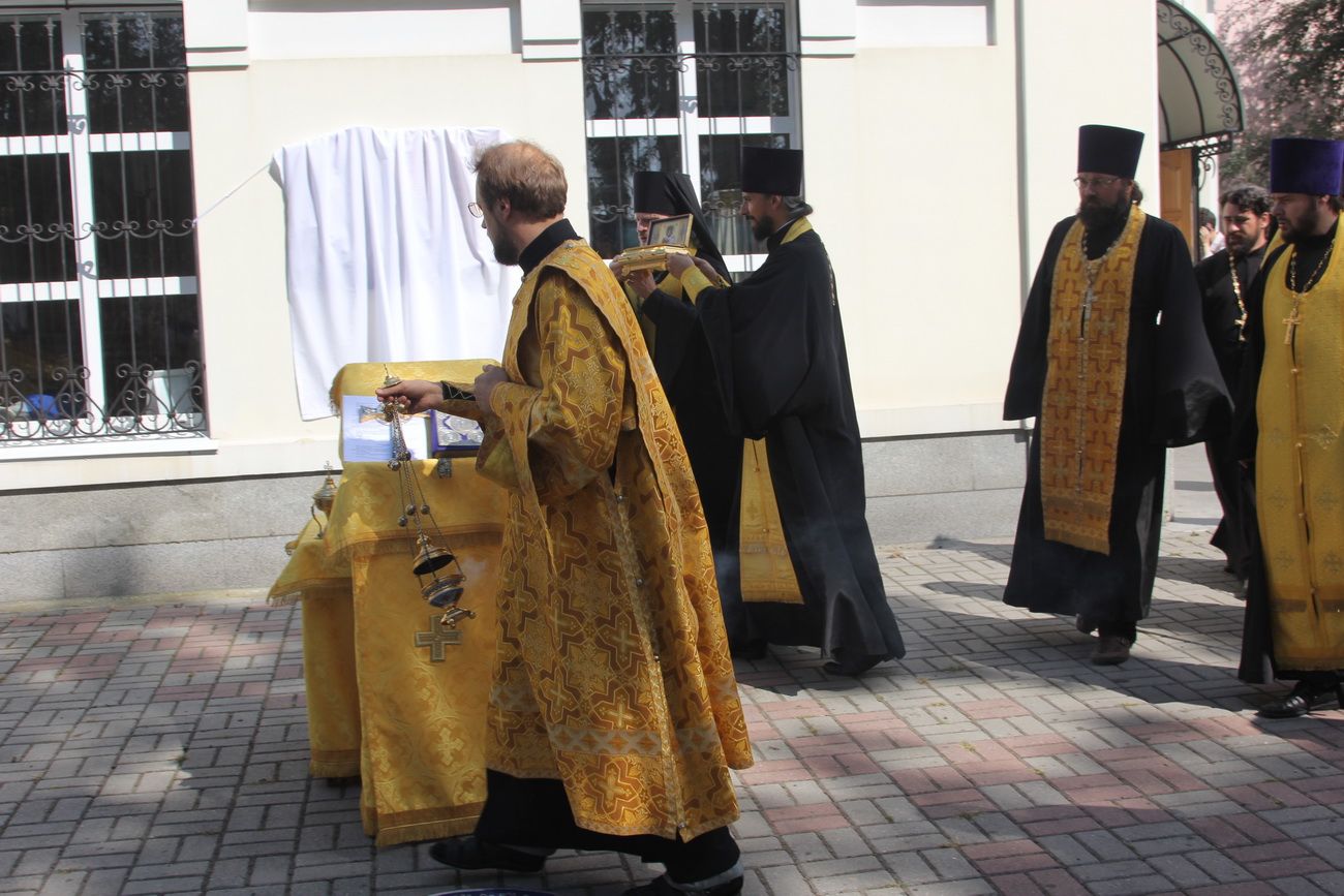 Церемонию возглавил викарий Владивостокской епархии епископ Уссурийский Иннокентий — нынешний настоятель Успенского храма. Из алтаря во двор Успенского храма, к месту установки барельефа была принесена святыня — ковчег с частицей мощей святителя Иннокентия, доставленный в храм в мае этого года. Перед святыней был совершен благодарственный молебен святителю, который совершил епископ Иннокентий в сослужении ключаря Успенского храма протоиерея Олега Дикмарова и духовенства. За богослужением владыка Иннокентий окропил открытую мемориальный барельеф святой водой. Событие завершилось многолетием в исполнении хора Успенского храма и колокольным звоном. Все участники получили в подарок на память о событии иконки святителя Иннокентия.