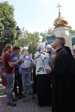 По завершении церемонии на территории церковного двора гостям было предложено угощение.