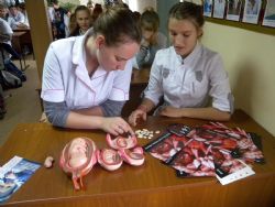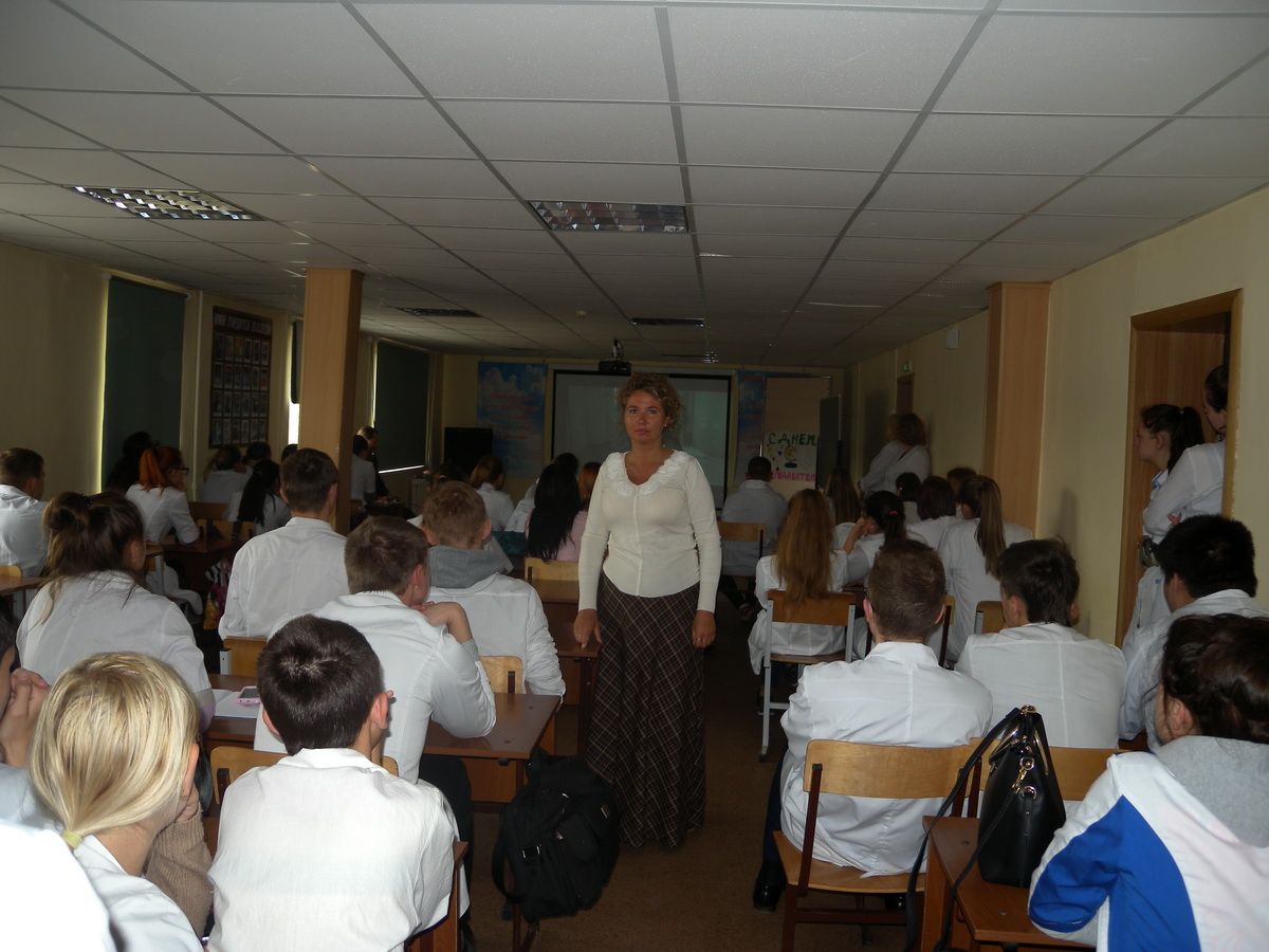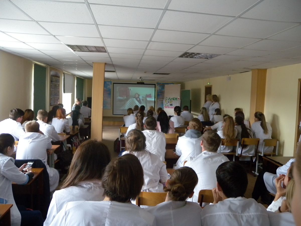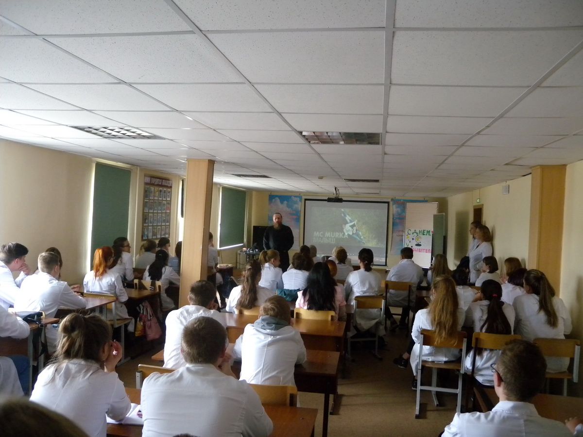 Далее отец Андрей и Елена Владимировна провели беседы со студентами 1 и 2 курса медицинского колледжа Партизанска. Беседа началась с просмотра короткометражного фильма Елены Пискарёвой "Живи", признанного лучшим игровым фильмом на XXI Международном кинофестивале кино- и телепрограмм «Радонеж». Отец Андрей рассказал о целомудрии, о ценности семьи, особое внимание обратил на ответственность мужчин за своих девушек и жён.