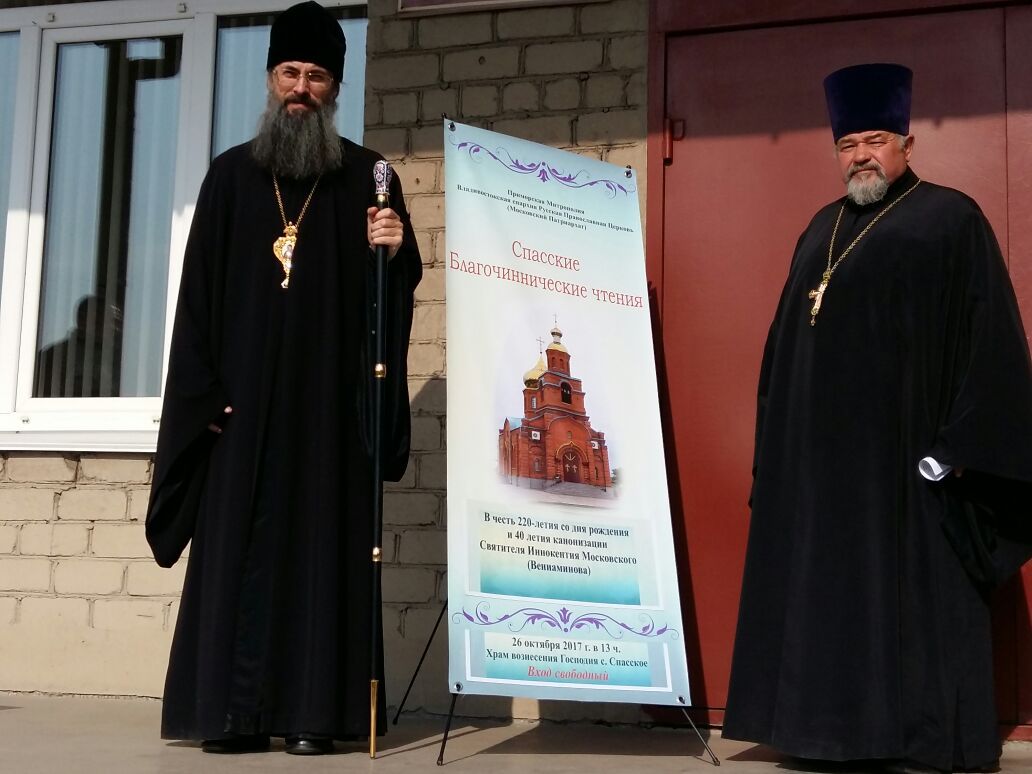 С. Спасское. 26 октября в храме Вознесения Господня состоялись Спасские Благочиннические чтения, в которых приняли участие епископ Уссурийский Иннокентий, викарий Владивостокской епархии, благочинный, настоятель храма протоиерей Владимир Капитанюк, настоятели и прихожане храмов VI округа. Конференция была посвящена 220-летию со дня рождения и 40-летию канонизации святителя Иннокентия Московского Вениаминова.