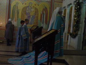 Вечером того же дня Его Высокопреосвященство совершил Всенощное бдение в Покровском кафедральном соборе.