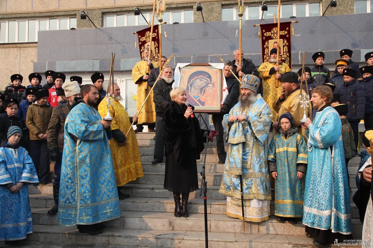 4 ноября состоялся традиционный крестный ход с образом Казанской иконы Божией Матери. После Божественной литургии от Благовещенского кафедрального собора города Арсеньева молитвенное шествие прошло до дворца Культуры «Прогресс», где в этот день пройдут заключительные мероприятия «Дальневосточная Ярмарка хоров». В Арсеньевской епархии праздничные мероприятия прошли при непосредственном содействии и участии органов исполнительной власти. Крестный ход был завершён светским митингом по случаю Дня народного единства.