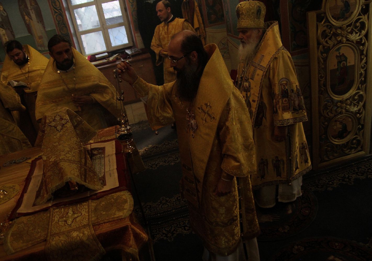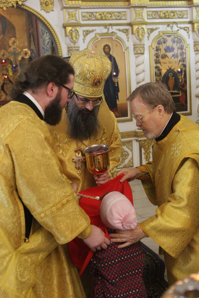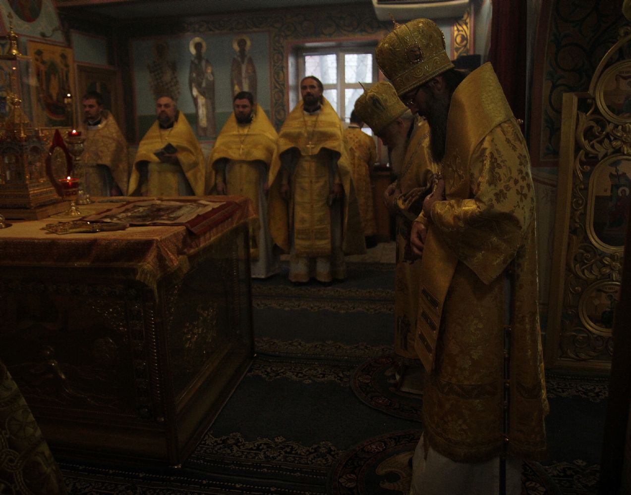 По окончании Литургии был совершен молебен святителю Иннокентию Вениаминову и великомученице Екатерине — в честь святителя Иннокентия Виталий Викторович Ерохин принял 20 лет назад, в 1997 г., монашеский постриг; а в 2010 г., 7 декабря, в день памяти великомученицы Екатерины, был хиротонисан во епископа Уссурийского, викария Владивостокской епархии.