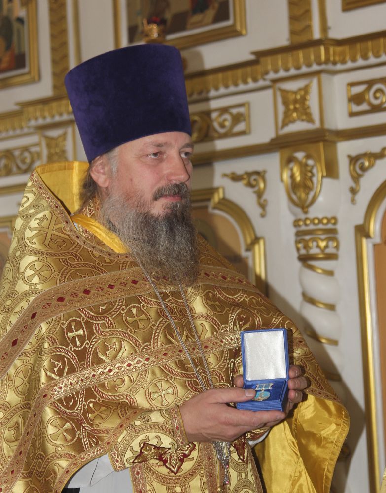 Со словами поздравления к юбиляру обратился и настоятель Покровского храма пос. Угловое протоиерей Сергий Бирюк, отметив, что владыка Иннокентий в своем Архиерейском служении уделяет много внимания научной работе — в особенности, истории Православия на Дальнем Востоке. Митрополит Вениамин, в свою очередь, поздравил протоиерея Сергия Бирюка, который на днях также отметил 50-летний юбилей, и вручил настоятелю Покровского храма пос. Угловое Епархиальную награду — медаль «За церковные заслуги перед Владивостокской и Приморской епархией» (I степени).