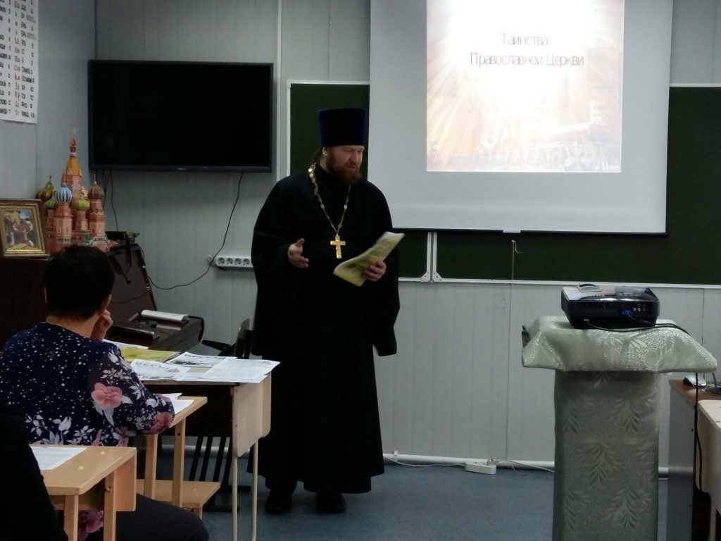Беседу о «Таинствах Церкви» очень подробно, с примерами, провёл иерей Владимир Коротких, настоятель храма Преображения Господня г. Спасск-Дальний, которого специально пригласили.