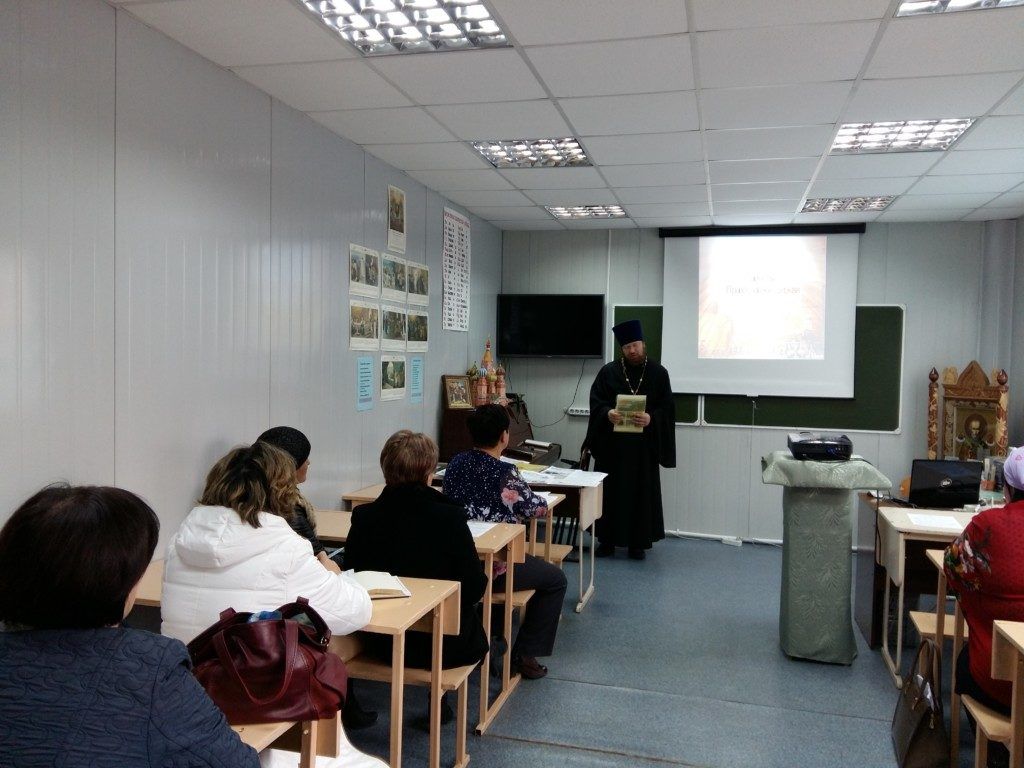 Спасское. По благословению митрофорного протоиерея Владимира Капитанюка, настоятеля храма Вознесения Господня с. Спасское, на базе Воскресной школы состоялось очередное заседание (семинар) учителей методического объединения, преподающих курс ОРКСЭ в школах города и района.